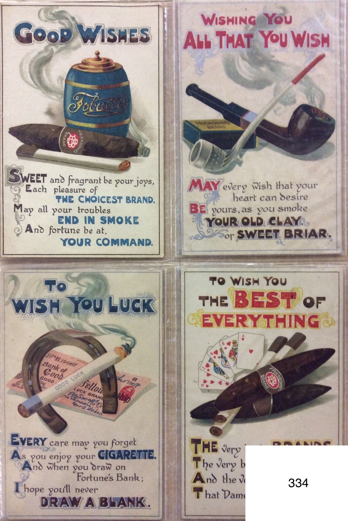 Album of over 80 postcards with smoking. Comics, greetings, children, men and more.