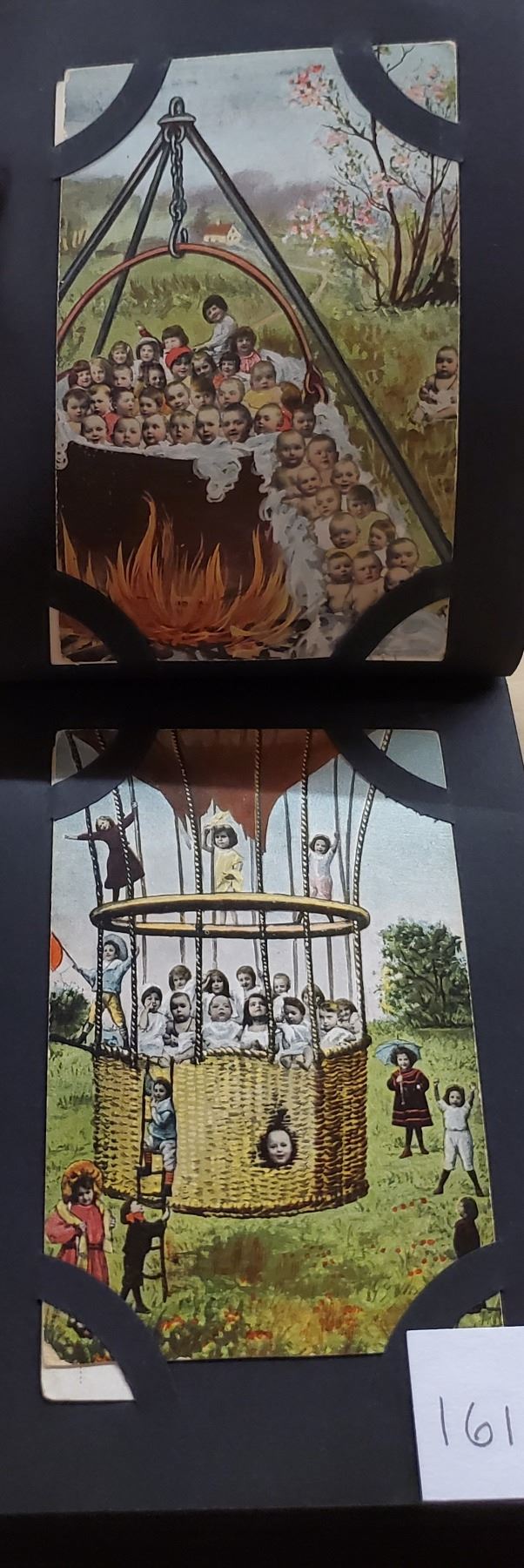 Album of over 80 cards. Multiple babies, names and greetings from. All early.