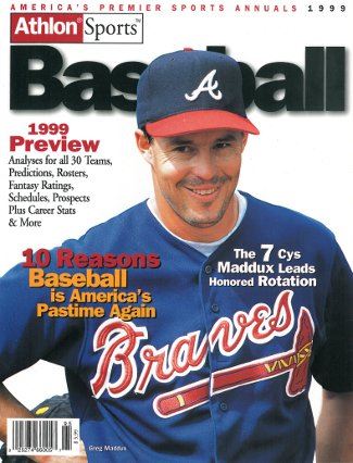 This is an Athlon Sports 1999 MLB Baseball Magazine with Atlanta Brave Pitcher Greg Maddux on the cover. This Preview has team analysis, predictions, lineups and more for the 1999 Season