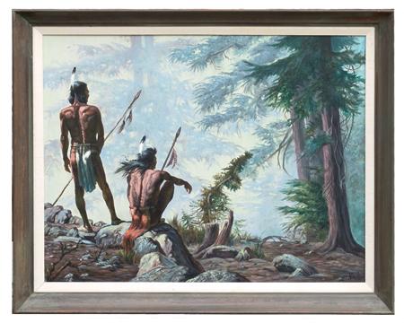 Circa 1980s, Signed original oil on canvas "A Pause on Their Journey, Sioux." 29" x 36" (34" x 46") From the Millican Collection.