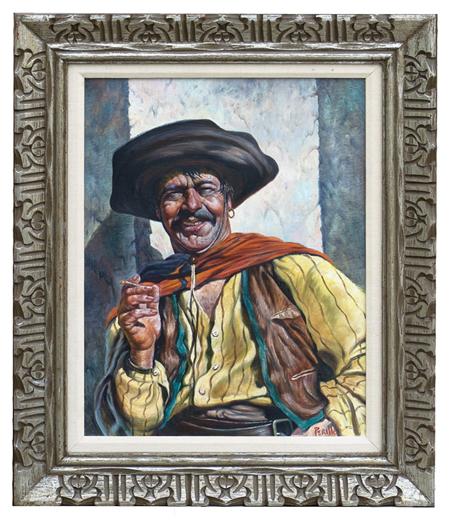 Circa 1980s, Signed original oil on canvas "Mexican." 24" x 18" (33" x 27") From the Millican Collection.