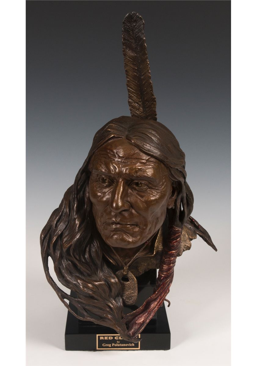 Greg Polutanovich (1966 - ). Red Cloud. 15" x 9" x 7" bronze. Inscribed: GP 4/10 ©. Provenance: Estate of Ken Holm, Denver, CO.