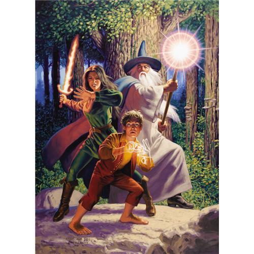 <B>Greg and Tim Hildebrandt - InQuest Gamer Magazine #63 Cover Original Art (Wizard Entertainment, 2000).</B></I> It was a daunting challenge for the Hildebrandt brothers: create a captivating cover for an issue previewing the first "Lord of the Rings" movie, "The Fellowship of the Ring," but without the aid of any stills or other reference material from the studio, which was keeping everything under wraps! Despite this handicap, the famed duo produced outstanding artistic likenesses of Liv Tyler (Arwen), Elijah Wood (Frodo), and Ian McKellen (Gandalf). Of course, the Hildebrandt brothers know the Middle Earth characters inside and out thanks to their fantastic work on the J. R. R. Tolkien calendars of the 1970s. The news of the tragic death of Tim Hildebrandt just a few weeks ago has led to many tributes in the press, and this is a prime example of the kind of captivating work that garnered Tim and his brother Greg their huge following. This luminous painting was created in acrylics on a 27" x 38" sheet of masonite. Framed and in Excellent condition. <BR><BR><B>Important notice:</B> Heritage usually auctions material at the rate of 200-250 lots per hour. On some occasions eBay Live bid software or the Internet may not be able to keep up with the pace of the auction. We recommend placing a realistic absentee bid now as insurance to avoid disappointment. Occasionally the auctioneer may eliminate or reject an eBay Live bid, and the auctioneer may also reopen a lot after the close of the eBay live bidding (usually because we missed an audience bid), and may reject your bid even if it shows you as the winning bidder. By bidding via eBay Live, you agree that Heritage may award the lot to another bidder at its sole discretion under the circumstances described above or any other reasonable circumstances. Since eBay bids are not shown to us until we open the lot on the floor, we treat those bids just like floor bids. In most cases the floor responds before the eBay bid is presented to us, due to Internet lag time, so for consistency we have made it a policy that floor bids are always considered first over tie eBay live bids. Also please note that all Heritage lots purchased through eBay Live carry a 22.5% Buyer's Premium. Please make sure you read the Terms and Conditions before you bid. This lot is being auctioned in conjunction with a live floor auction by Heritage Auction Galleries. All final auction and invoice information will be supplied by Heritage Auction Galleries, and all other information should be considered preliminary. Lot:41001 <BR><BR><B>Winning Notification and Billing:</B> After the FINAL session in this auction is complete, Heritage will send e-mail and snail mail invoices. This process normally takes several days. All final auction and invoice information will be supplied by Heritage Auction Galleries, and all other information should be considered preliminary. <BR><BR>This auction will be conducted on a live auction floor and over the Internet through eBay Live. If you choose to place an absentee bid, please take a moment to <font color='#0000ff'><u><a href='http://pages.ebay.com/liveauctions/help/before/laabsentee.html'>learn how eBay Live absentee bidding works</a></u></font><font color='#000000'>