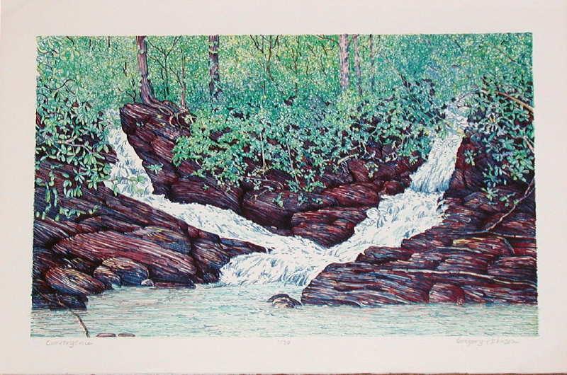 Original, hand drawn, 20x30 in. lithograph printed in 1988 on Rives BFK paper in an edition of 30 prints with 1 Artist Proof. Domestic shipping $20. International shipping cost depends upon location. Artist Gregory Johnson was born on January 30th, 1955, in Chicago Illinois. His early training includes the Art Institute of Chicago and tutoring by several world-class artists. An art scholarship sent him to Bowling Green State University in Ohio in 1973. Later, after winning the Elizabeth Stein Award of Art Excellence Scholarship, he traveled to Illinois State University, where he studied sculpture, painting, and art history for the following six years. He traveled through Europe and the Mediterranean, touring major Art museums for the entire summer through an International Studies Program. After graduating from ISU with a Masters of Science in Art, he began his chosen career as an artist. His work has sold well in the gallery environment, and resulted in numerous awards, commissions, reviews and one-man exhibitions.