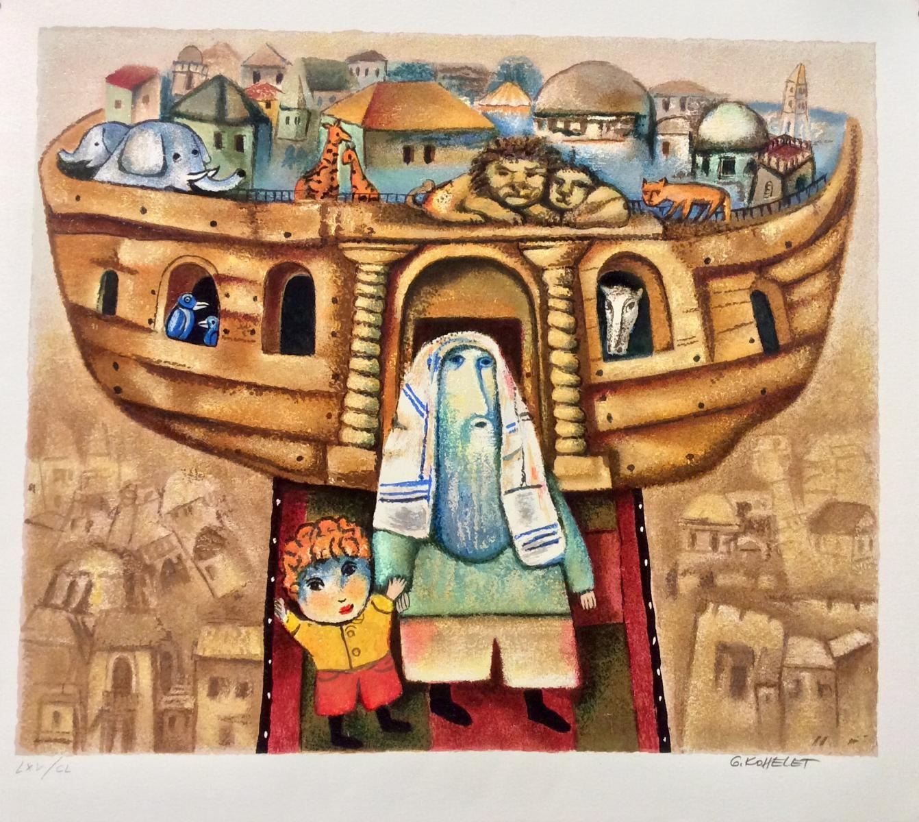Artist: Gregory Kohelet. Medium: Original Serigraph. Title: Noah's Ark . Size (Unframed): 20" x 23". Certificate of Authenticity: From the publisher.