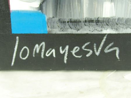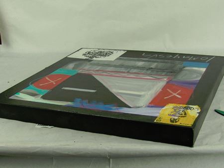 Late 1900s, Signed original fameless multimedia/acrylic on canvas, in the center a large kachina head. Very good condition. 18" x 18"