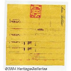 <B>Gregory Peck - Group of Seven Signed Checks (1979).</B></I> Seven checks, drawn on Gregory Peck's Business Account, from 1979. All checks are typed and signed in Peck's bold hand. In fine condition, on average. <I>Accompanied by COA from PSA/DNA. </B></I> <BR><BR><B>Important notice:</B> Heritage usually auctions material at the rate of 200-250 lots per hour. On some occasions eBay Live bid software or the Internet may not be able to keep up with the pace of the auction. We recommend placing a realistic absentee bid now as insurance to avoid disappointment. Occasionally the auctioneer may eliminate or reject an eBay Live bid, and the auctioneer may also reopen a lot after the close of the eBay live bidding (usually because we missed an audience bid), and may reject your bid even if it shows you as the winning bidder. By bidding via eBay Live, you agree that Heritage may award the lot to another bidder at its sole discretion under the circumstances described above or any other reasonable circumstances. Since eBay bids are not shown to us until we open the lot on the floor, we treat those bids just like floor bids. In most cases the floor responds before the eBay bid is presented to us, due to Internet lag time, so for consistency we have made it a policy that floor bids are always considered first over tie eBay live bids. Also please note that all Heritage lots purchased through eBay Live carry a 24.5% Buyer's Premium. Please make sure you read the Terms and Conditions before you bid.