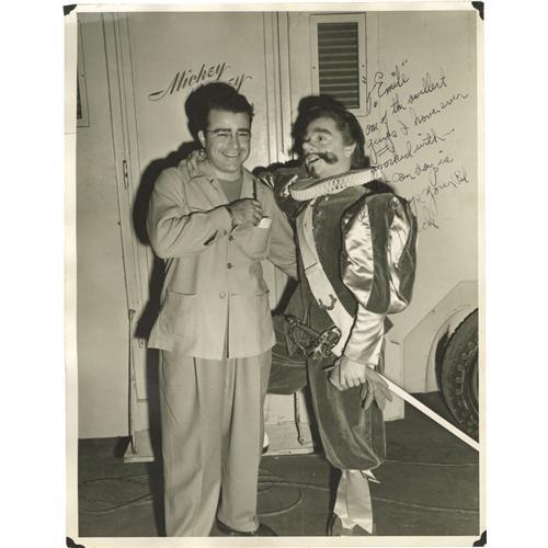 <B>Gregory Peck and Mickey Rooney Signed Photos to Emile LaVigne.</B></I> Includes a b&w 8" x 10" photo of Peck inscribed and signed by him in black ink, and a b&w 11" x 14" photo inscribed and signed by Rooney in black ink. In Very Fine condition with mild wear and some light creasing. <I>From the estate of Emile LaVigne.</B></I><BR><BR><b>Shipping:</b> Flat Material, Large (<a target="_blank" href="http://www.heritageauctions.com/common/shipping.php">view shipping information</a>)