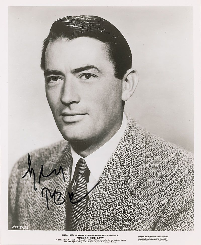 Glossy 8 x 10 Paramount promotional photo for Roman Holiday, signed in black felt tip. In very fine condition.