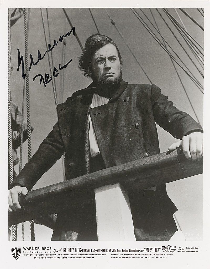 Glossy 8 x 10 photo of Peck as Captain Ahab in the Warner Bros. screen adaptation of Moby Dick, signed in black felt tip. In fine condition.