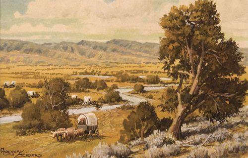 Gregory Sievers (b. 1951). "Bear River Crossing". 6" x 9". Gouache. (est $600-800)