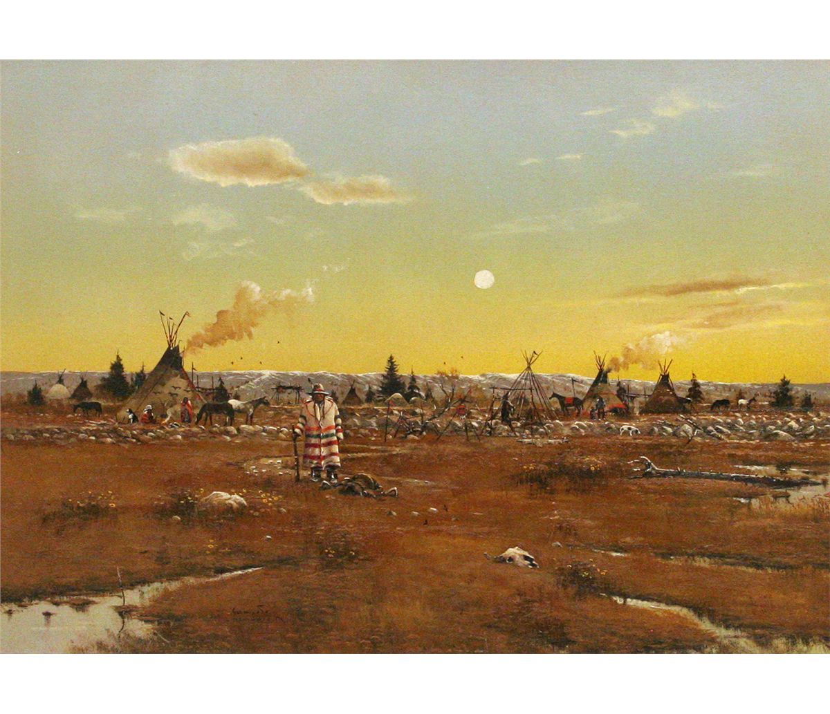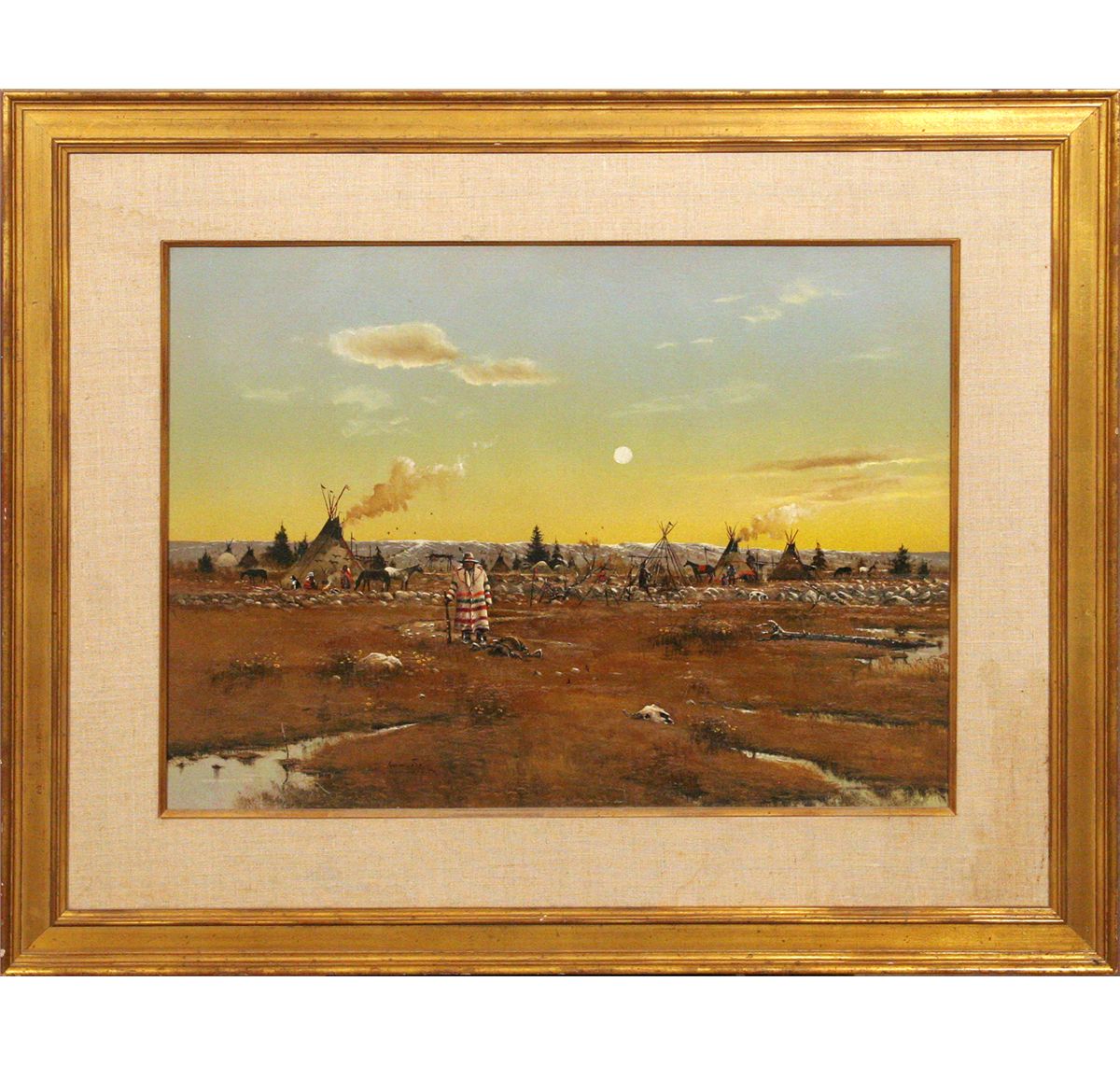 Gregory Sumida (1948 - ). Looking for his Horse. 18" x 24" oil on canvas. Signed lower center-left: © Sumida MCMLXXX (1980).
