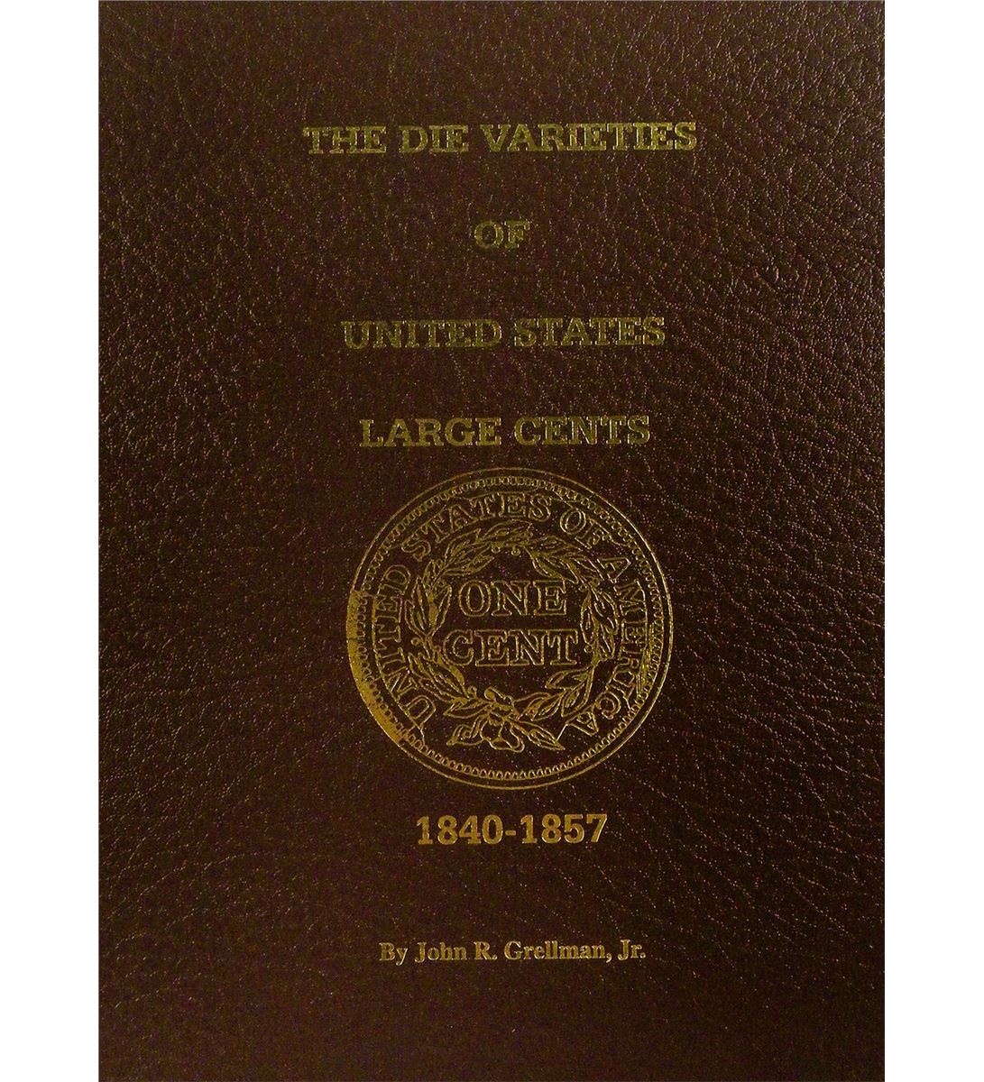 Grellman, John R., Jr. THE DIE VARIETIES OF UNITED STATES LARGE CENTS, 1840-1857. N.p., 2001. 4to, original brown grained leatherette, gilt. xiv, 450 pages; illustrated. Inscribed and signed by the author. Fine. The current edition of the standard reference