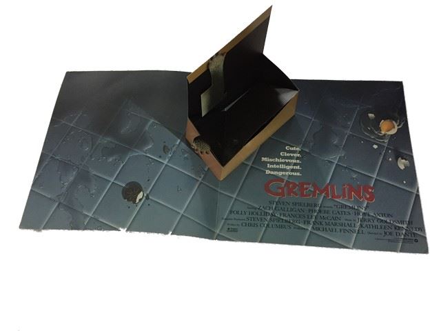 Gremlins (Warner Bros.,1984). Movie Promo Pop-up Display. Starring: Zach Galligan, Phoebe Cates, and Hoyt Axton . There are stains, creases and edge wear damage. Very Fine. (13.5" X 13.5").