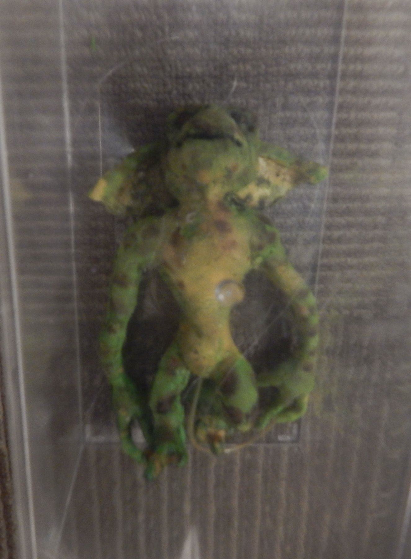 Original prop gremlin from the film Gremlins 2. This little guy stands approximately six inches high. He will be delivered in a lucite box because of its fragilty. All items come with a certificate of authenticity good for the life of the piece.