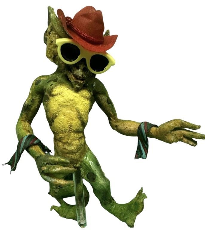 Original gremlin and set of accessories used in the Joe Dante directed comedy horror film 'Gremlins 2: The New Batch' (1990), which continues the story of the mogwai Gizmo (voiced again by Howie Mandel), who spawns more of his kind that eventually become the eponymous monsters when wet