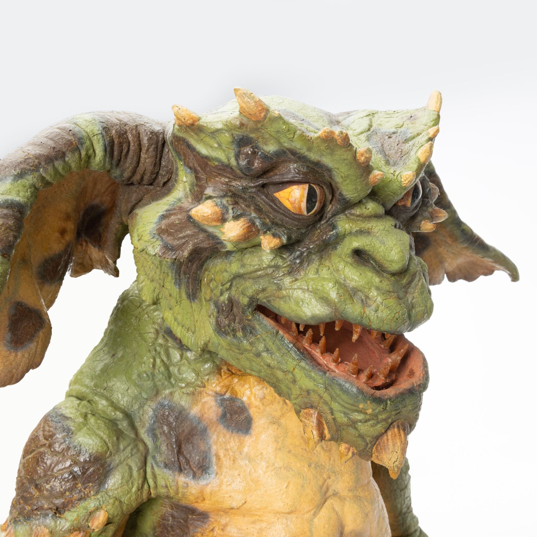 Original full-sized hand puppet prop used in the production of the 1990 horror fantasy film Gremlins 2: The New Batch. The magical collectibles store that Gizmo calls home has just been destroyed, and the tiny monster finds his way into a newly erected skyscraper. Billy Peltzer (Zach Galligan) and his bride-to-be, Kate (Phoebe Cates), who have previously dealt with Gremlins run amok, discover that Gizmo and an impish legion of reptilian pals are inhabiting the downtown building. The couple tries to stop the creatures from escaping into New York City, but this new batch of beasts might be uncontrollable.