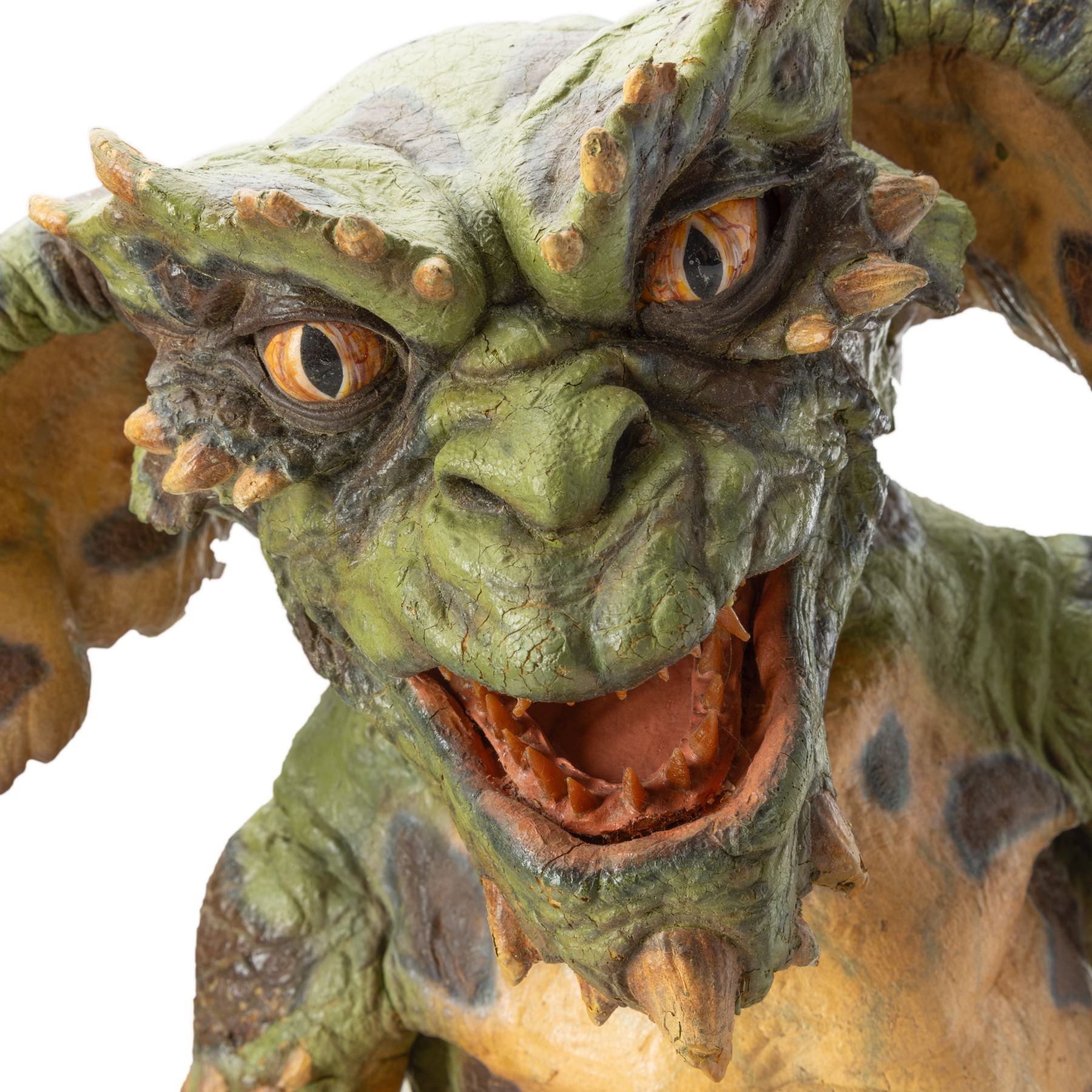 These full-sized puppets were created by Cinovation Studios under effects master Rick Baker for the second installment of the Gremlins franchise. This piece was brought to life on screen by a puppeteer who controlled the movement of the Gremlin with his hand. This item features a foam latex construction with a dense foam base and has been painted green with hues of yellow and brown detailing around the body. The Gremlin features resin teeth and eyes and shows signs of wear in the form of small cracks and dents in the foam latex. This piece remains in excellent, production-used condition. This lot is accompanied by a Certificate of Authenticity from Studio Auctions.