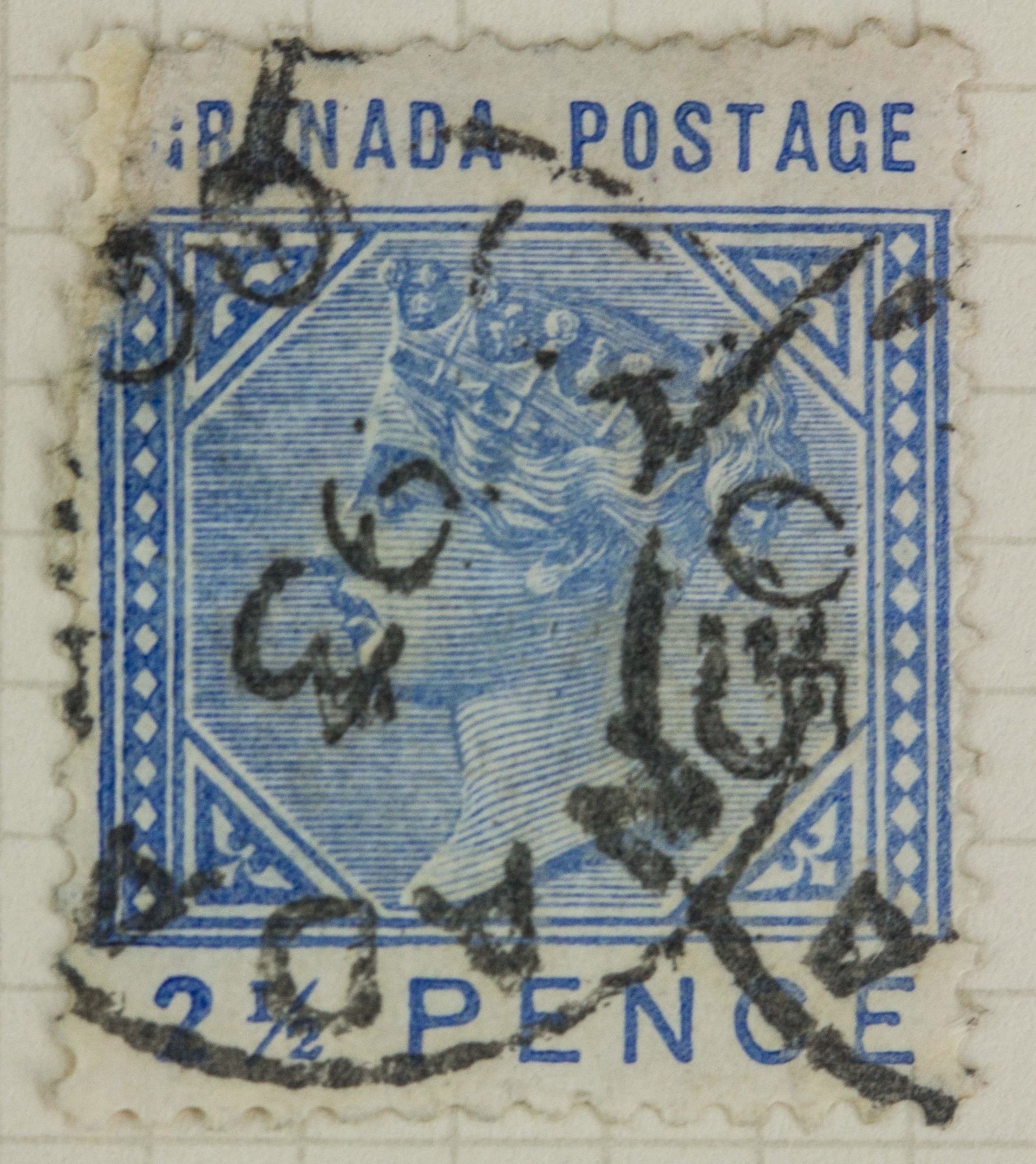 Grenada 2 and 1/2 Penny Stamp; 2.4 cm x 2 cm