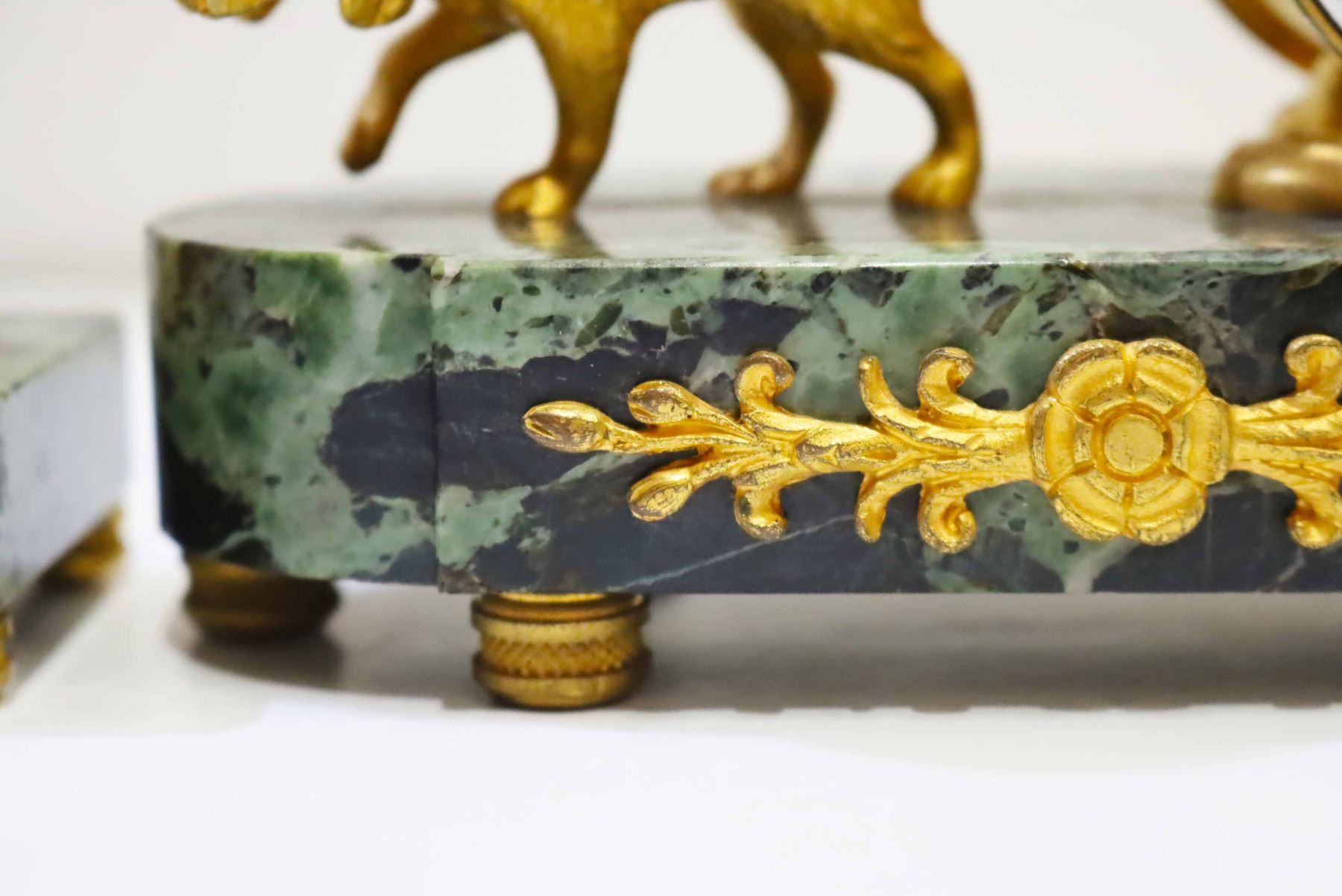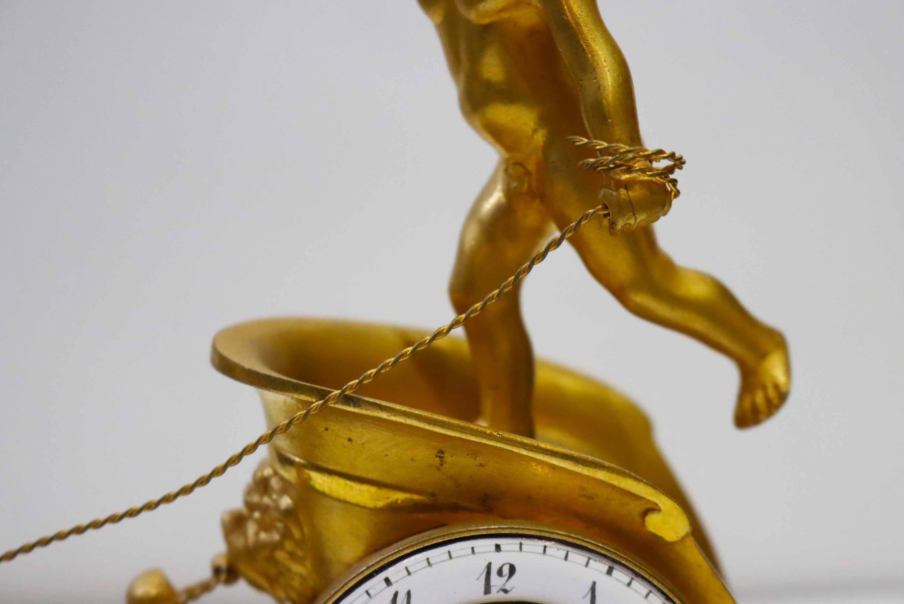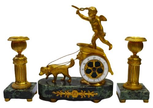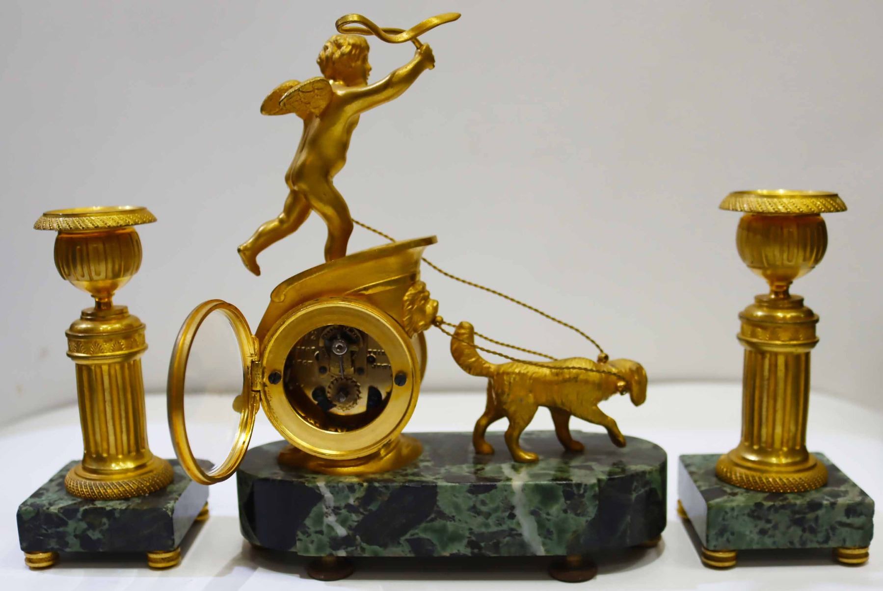 Gilt bronze charioteer on verdi with marble base. Matching candle cup nd 13 jewels. movement runs perfectly.