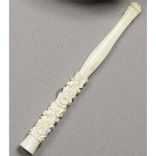 <B>Greta Garbo Cigarette Holder and Hat.</B></I> Alistair Cooke called Great Garbo "every man's harmless fantasy mistress. She gave you the impression that, if your imagination had to sin, it could at least congratulate itself on its impeccable taste." The elusiveness of Garbo (1905-1990), who ranks #5 on the American Film Institute's Greatest Screen Legends list, was as famous as her beauty and stardom, and very rarely do genuine Garbo artifacts become available. Here are two, housed in one attractive display: Garbo's personal ivory cigarette holder, approximately 4" long with a filigree of flowers carved on the stem, and the lady's black-and-silver-colored hat. Also featured is an 8" by 10" original still of Garbo from <I>Conquest</B></I> (1937). The impressive display measures 16" x 20" in a black metal frame with a glass front cover, and the items are set against a light green matte. This wonderful lot assuredly evokes classic Hollywood glamour and comes from the collection of Ann Sothern, who joined MGM in 1939, the year Garbo starred in <I>Ninotchka.</B></I> In Excellent condition. <I>From the Ann Sothern Estate. Accompanied by LOA from LA Prop & Wardrobe Company.</B></I><BR><BR><b>Shipping:</b> Clothing, Costumes & Jerseys (<a target="_blank" href="http://www.heritageauctions.com/common/shipping.php">view shipping information</a>)