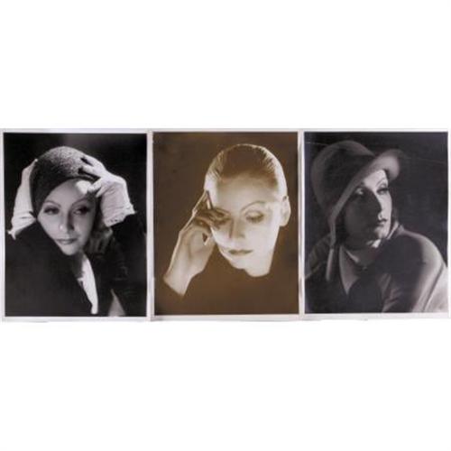 <B>Greta Garbo Vintage Photos.</B></I> Set of three vintage b&w 11" x 14" portraits of the enigmatic leading lady by Clarence Sinclair Bull. (Look closely -- she's actually smiling on one of them.) In overall Very Fine condition with mild wear and a heavy crease across the top of one of the prints.<BR><BR><b>Shipping:</b> Clothing, Costumes & Jerseys (<a target="_blank" href="http://www.heritageauctions.com/common/shipping.php">view shipping information</a>)