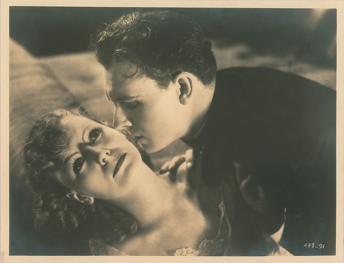 Seductive vintage sepia matte-finish 13 x 10 Milton Brown production still of Greta Garbo and Gavin Gordon in the 1930 film Romance, originating from the actress's personal collection. In fine condition. From the estate of Greta Garbo, who earned an Oscar nomination for her role as Rita Cavallini.