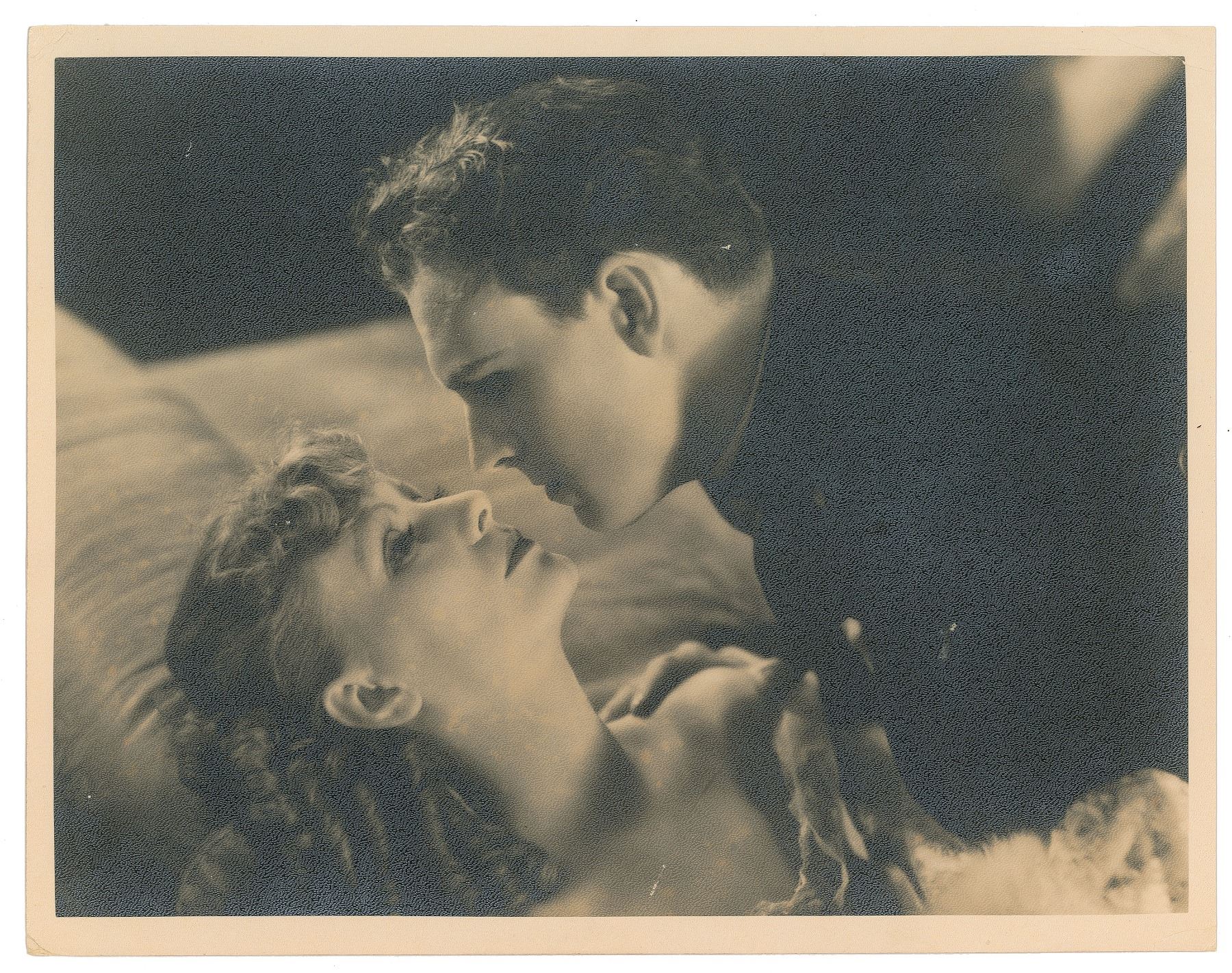Terrific vintage matte-finish 13 x 10 production still showing Garbo embraced by co-star Gavin Gordon in the 1930 film Romance, originating from the actress's personal collection. In fine condition, with creasing to corners. From the estate of Greta Garbo, who earned an Oscar nomination for her role as Rita Cavallini.