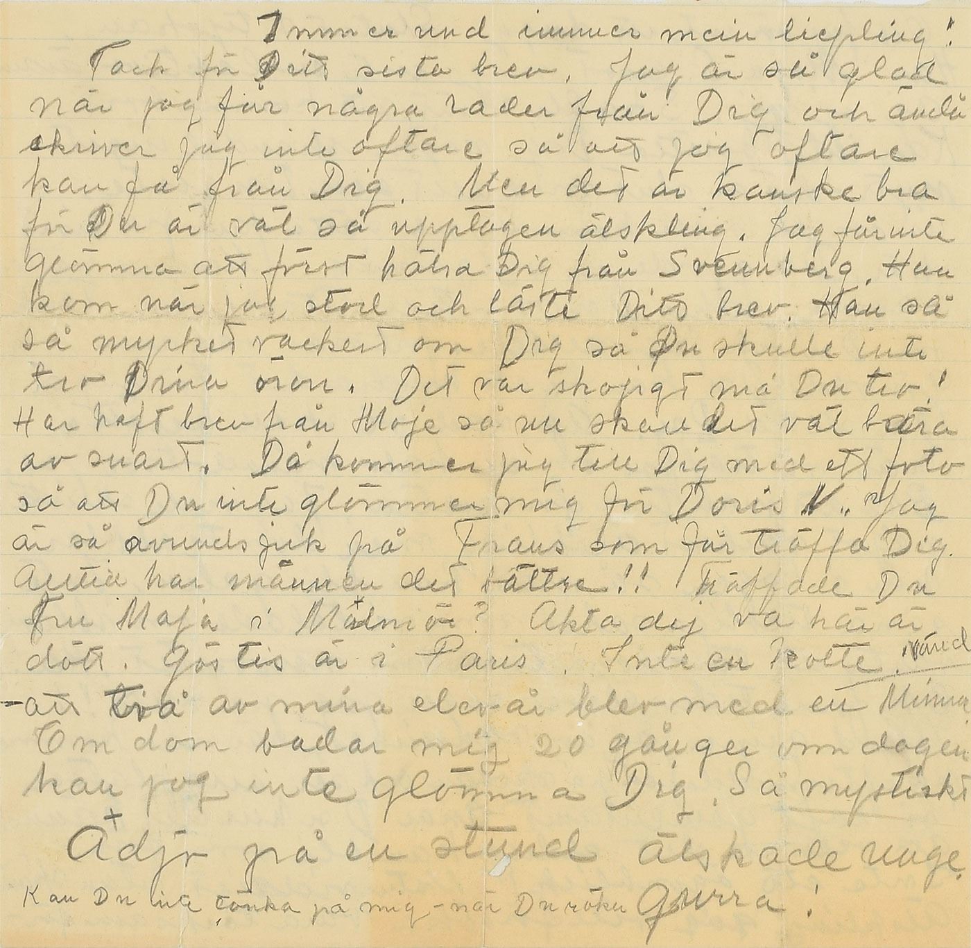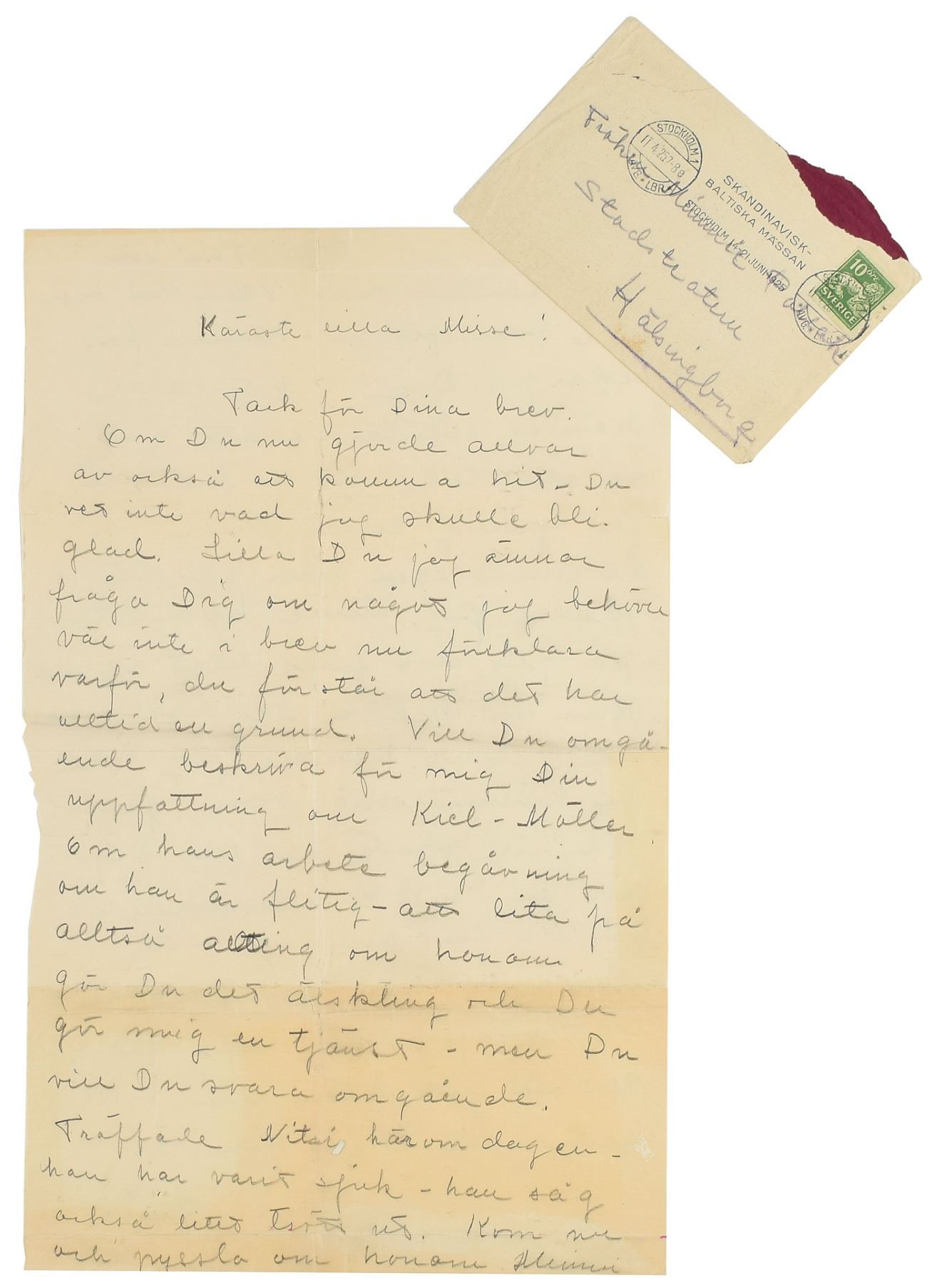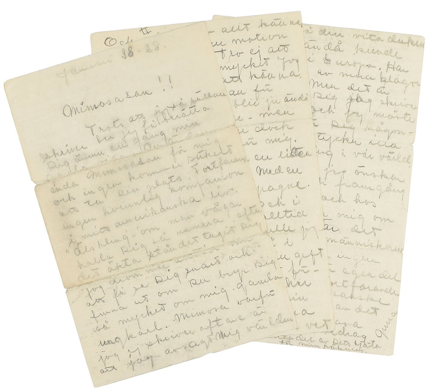 Garbo attended the Royal Dramatic Theatre [Dramaten] school in Stockholm with Pollak from 1922 to 1924, where she developed a deep infatuation with Pollak. It is unclear whether this was an unrequited love, but Garbo’s letters offer extraordinary insight into her private personal life and unveil a dimension of her enigmatic sexuality. Even when Pollak was happily married to actor Nils Lundell and pregnant with their child, Garbo wrote to her saying she believed they were meant to be together. Garbo and Pollak maintained a famous sixty-year correspondence, portions of which were published only recently. As an amazing collection of early and incredibly personal letters to the object of her affections, these letters are of the utmost rarity and desirability.