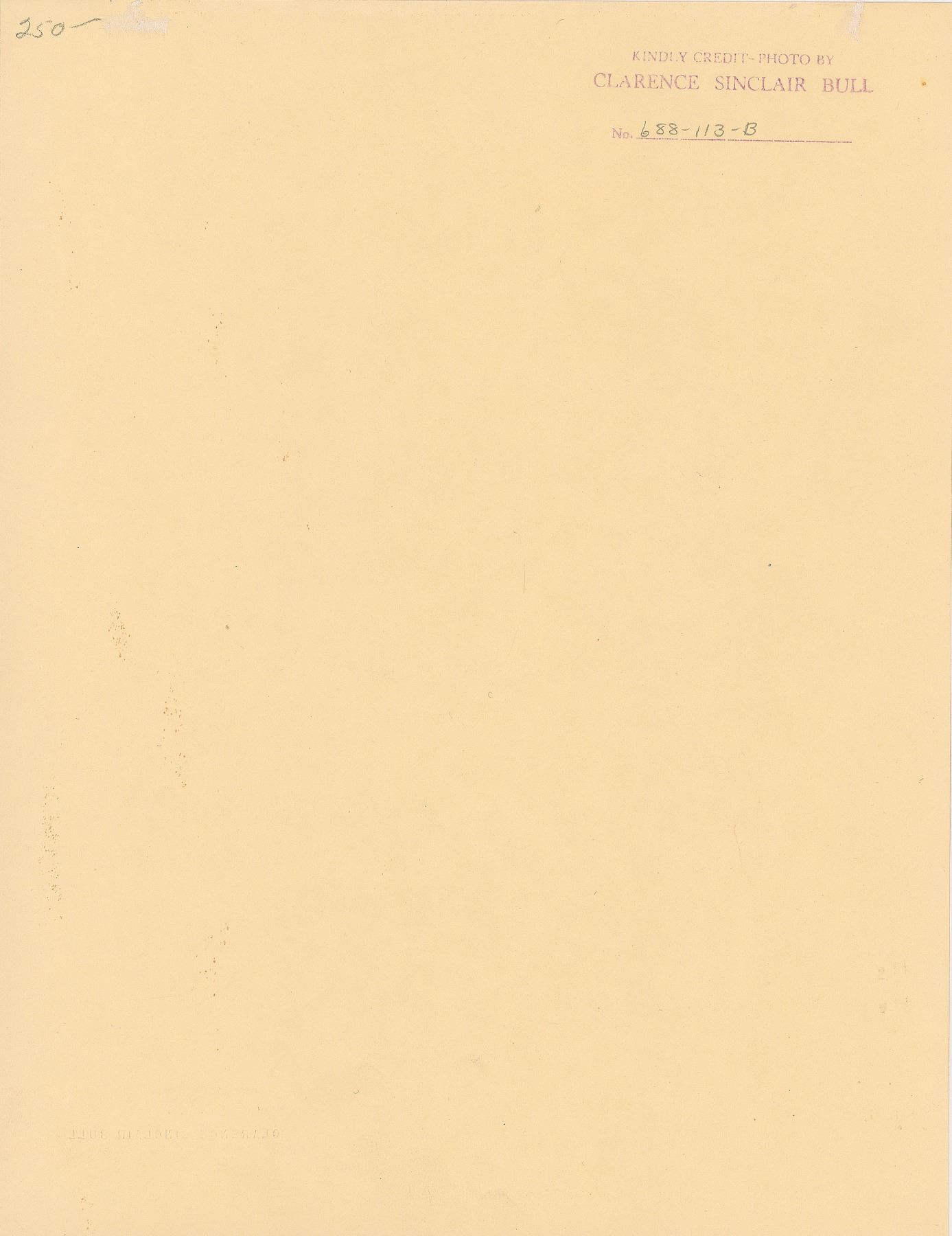 Glamorous original vintage matte-finish 10 x 13 portrait of Greta Garbo by Clarence Sinclair Bull, showing the reclusive actress dressed in furs for the 1933 film Queen Christina, with a square white collar and elegant tipped hat. Blindstamped in the lower right, "Clarence Sinclair Bull," with Bull's credit stamp on the reverse. In very fine condition. Consignor notes that this was purchased from the gallery at B. Altman and Company in New York during the 1980s.