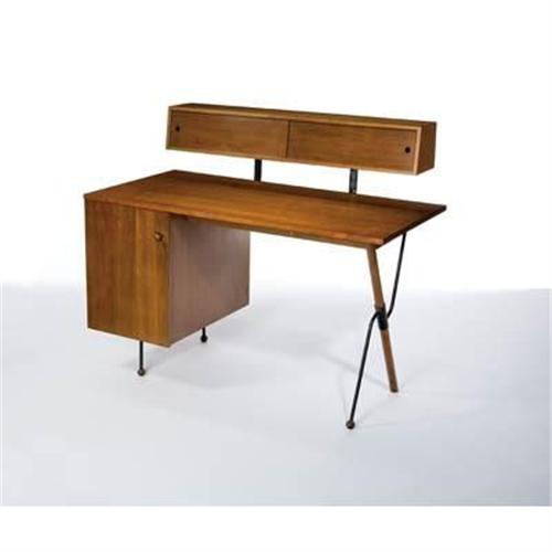 Artist Name: Greta Magnusson Grossman<BR>Manufacturer: Glenn of California<BR>Description: Desk (model no. 6200) with rare top storage unit (model no. 6200A)<BR>Circa: designed circa 1952<BR>Medium: <BR>Signature: <BR>Measurements: 40"h x 47.5"l x 25"w<BR