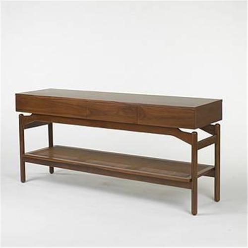 Greta Magnusson Grossman console Glenn of California USA, 1950 walnut, cane 65"w x 18"d x 30"h Three drawer configuration with lower cane shelf.
