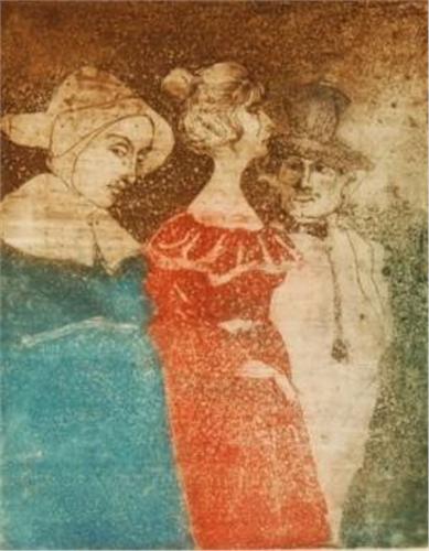 Gretty Rubenstein Rotman, 1945 - 2001, Femme du Monde, 1974, Etching in colors, 25x20 cm, Signed, dated and carry its title, , , Sara Kishon Gallery, ,