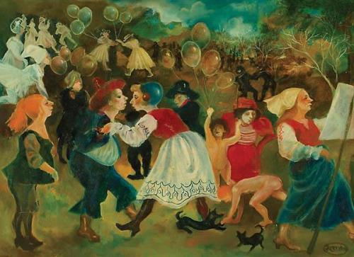 Gretty Rubenstein Rotman, 1945 - 2001, A Party in the Village, Oil on canvas, 65x91 cm, Signed, , , , ,