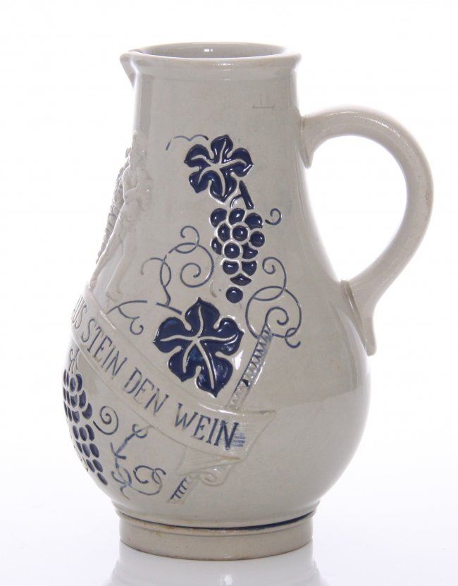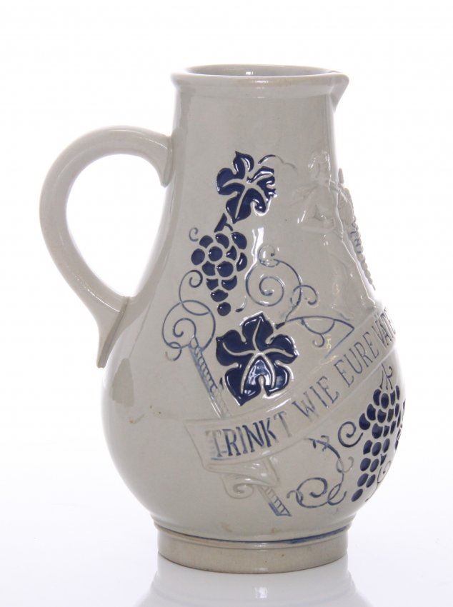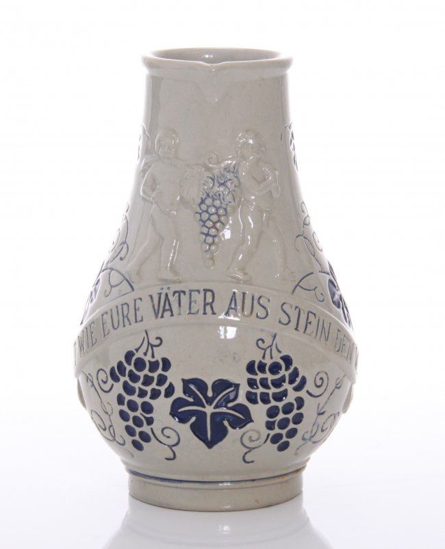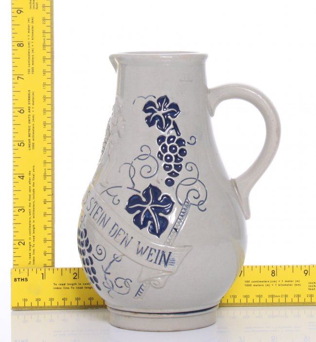 Grey & Blue German Pitcher Trinkt Wie Eure Vater Aus Stein Den Wein SIZE: see attached ruler photo. Photos are part of the description representing the condition report and can be used for authentication prior to the sale date. Pangaea Auctions urges Bidder's to view all attached photos in detail.