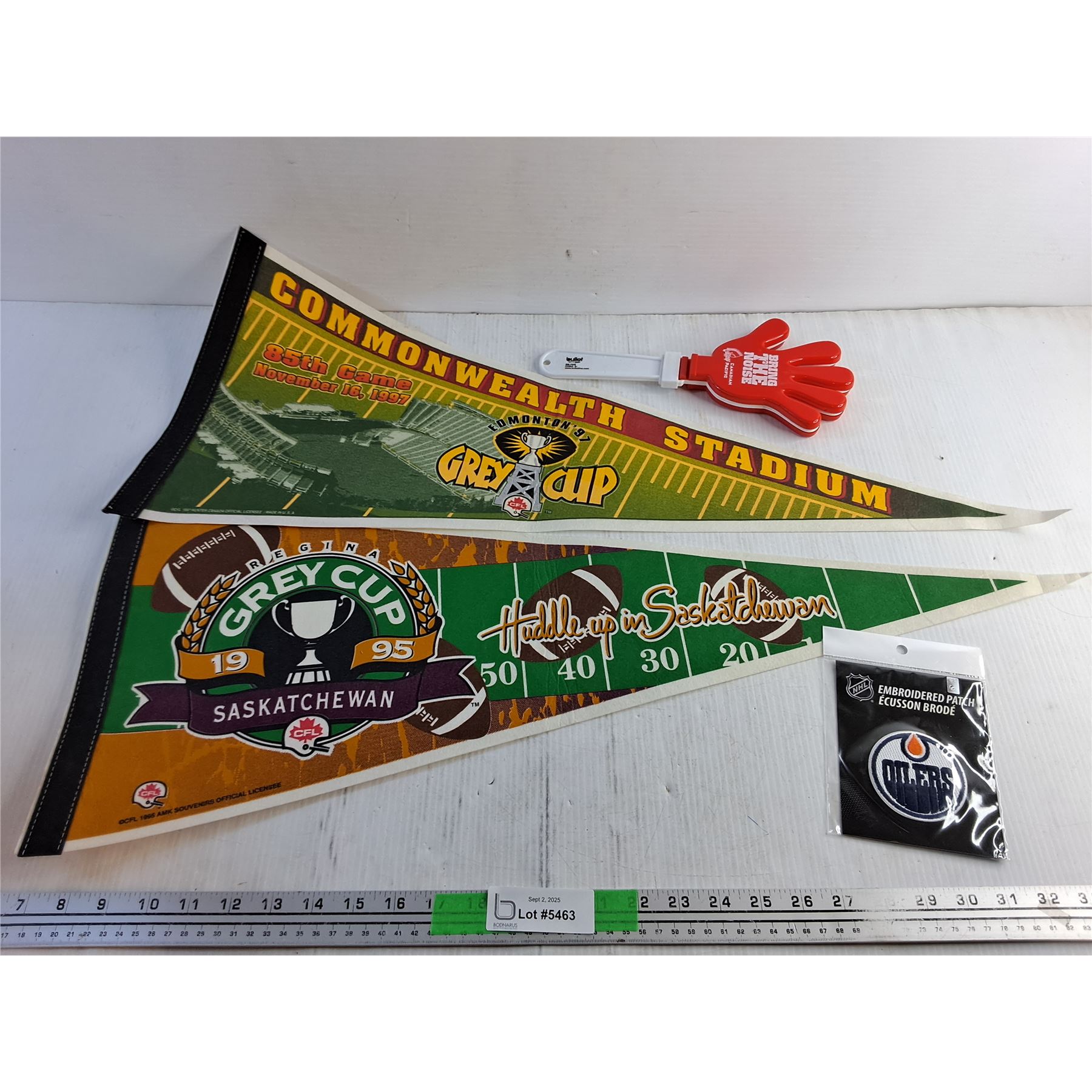 Grey Cup Pennants, Canadian Pacific Clapper, Oilers Embroidered Patch