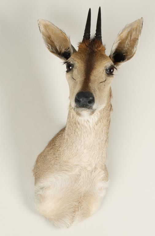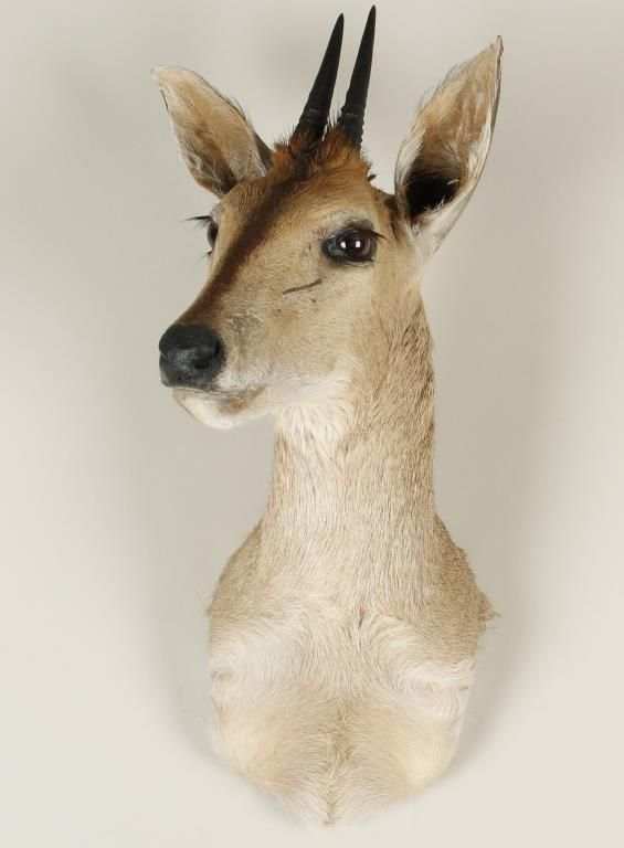 Taken in Transvaal, South Africa in 1982. Approx measurements are as follows: Overall height including horns: 15"; Widest point of body: 6"; Back to Nose tip: 13"; Crown to Left horn tip: 3 1/4"; Crown to Right horn tip: 3 1/4"; Horn tip width: 3/4". "Tony DaCosta Collection" of noted hunter and owner of Safari Headquarters Ltd. from Carson City, NV.