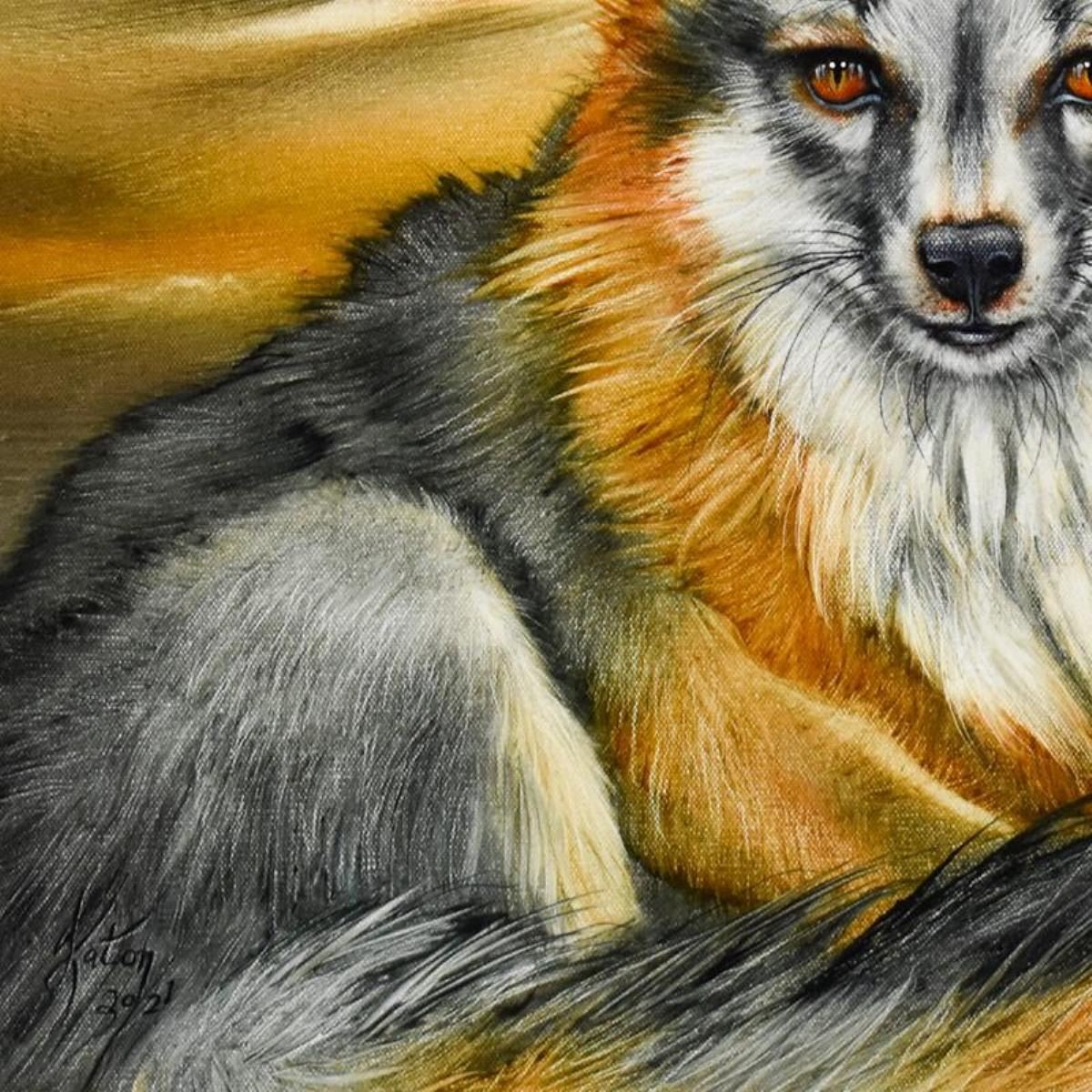 Grey Fox Puppy by Katon Original. "Grey Fox Puppy" is an original oil painting on stretched canvas by Martin Katon, hand signed by the artist. Includes Letter of Authenticity. Measures approx. 24" x 24" (image).