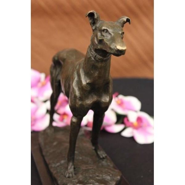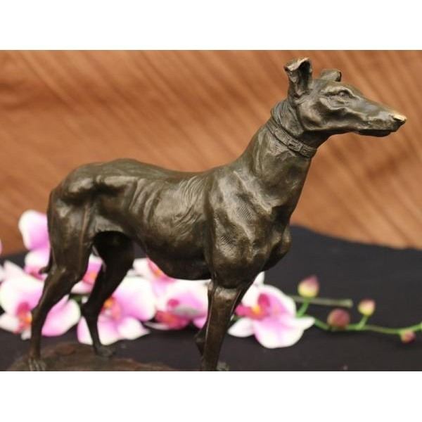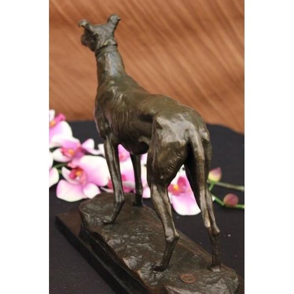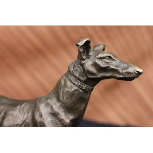 Foundry bronze greyhound sculpture by award winning European artist Fremiet. Using the traditional lost wax process, Fremiet attention to detail and love of the greyhound breed is captured in this lovely miniature bronze. Hand finished by the artist in all stages including the high-lighted patina, this sculpture is offered in very limited quantity. a lasting treasure for your collection. The earliest recorded sculptures by Fremiet are the small domestic animals particularly cats and dogs. This model of a greyhound dog is one his earliest sculptures. It is finished in a brown patina and has marble base. Bronze dimensions: Height 11 X Width 14 inches. Weight: 10 lbs.Please Note: This is a reproduction bronze sculpture from the original molded and signed. This featured bronze sculpture is a recast after the original, and has been done recently. This 100% bronze sculpture is an abstract piece certain to be a conversation piece.Please Note: This is a reproduction bronze sculpture from the original molded and signed. This featured bronze sculpture is a recast after the original, and has been done recently. This 100% bronze sculpture is an abstract piece certain to be a conversation piece.