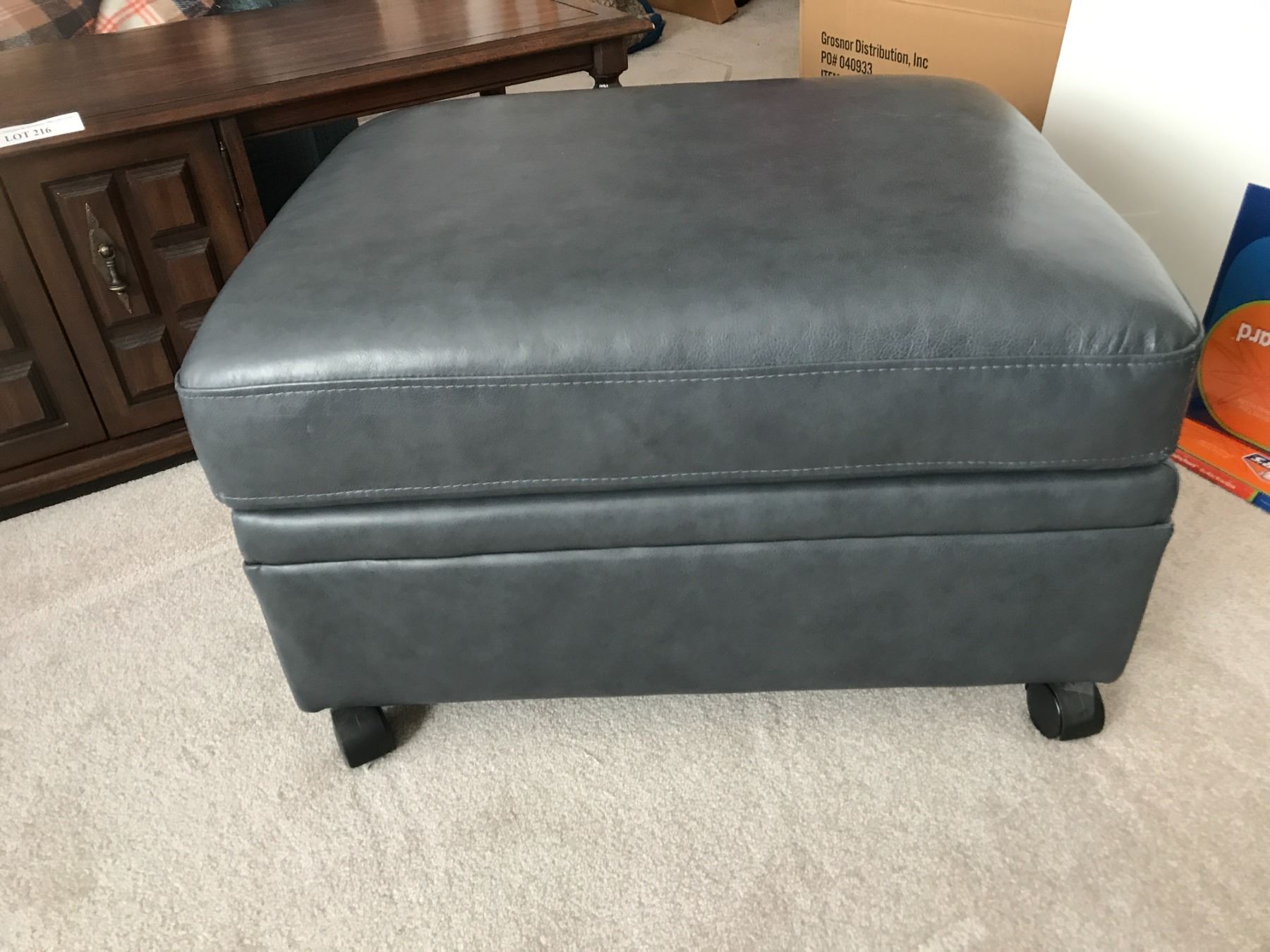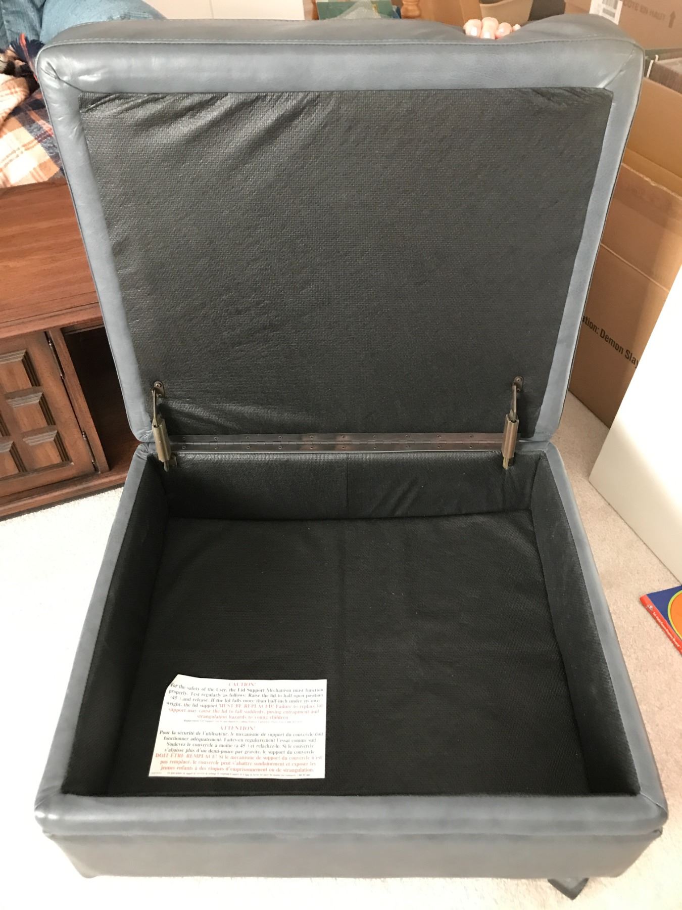 Grey Leather Storage Ottoman, Mid Century Modern Coffee & End Table