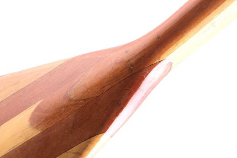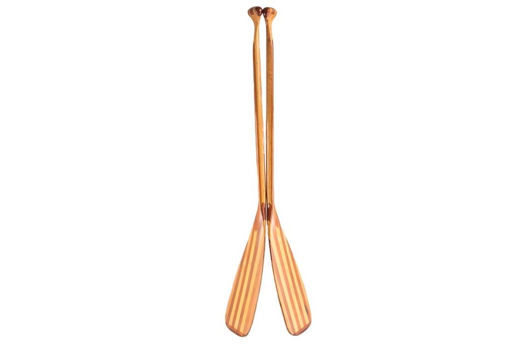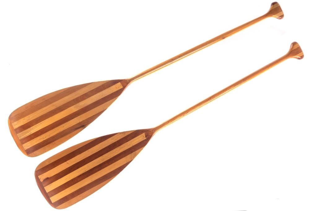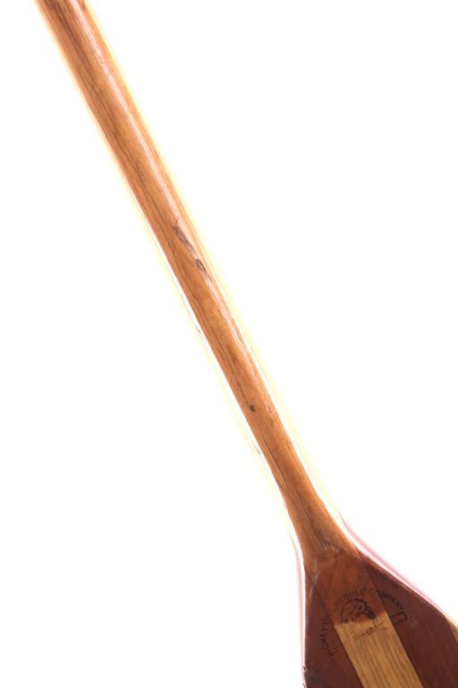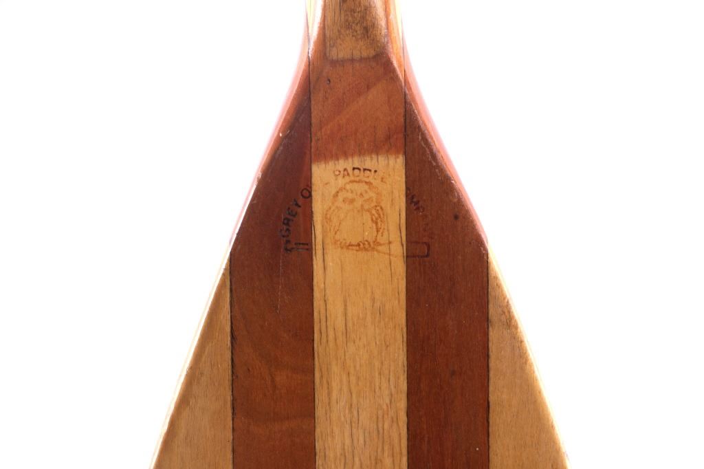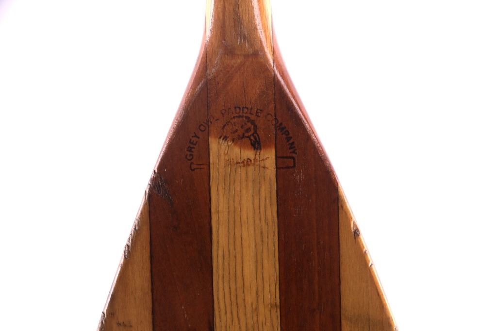 Featured in this lot is this pair of Grey Owl canoe paddles circa mid to late 1900's. There are two paddles in this collection with a professionally and well crafted angled design. These paddles were crafted by a Canadian company called Grey Owl Co. The condition of these paddles is good with no obvious signs of damage and in good overall condition. The measurements of these angled paddles are 50" x 8 1/2" x 5".