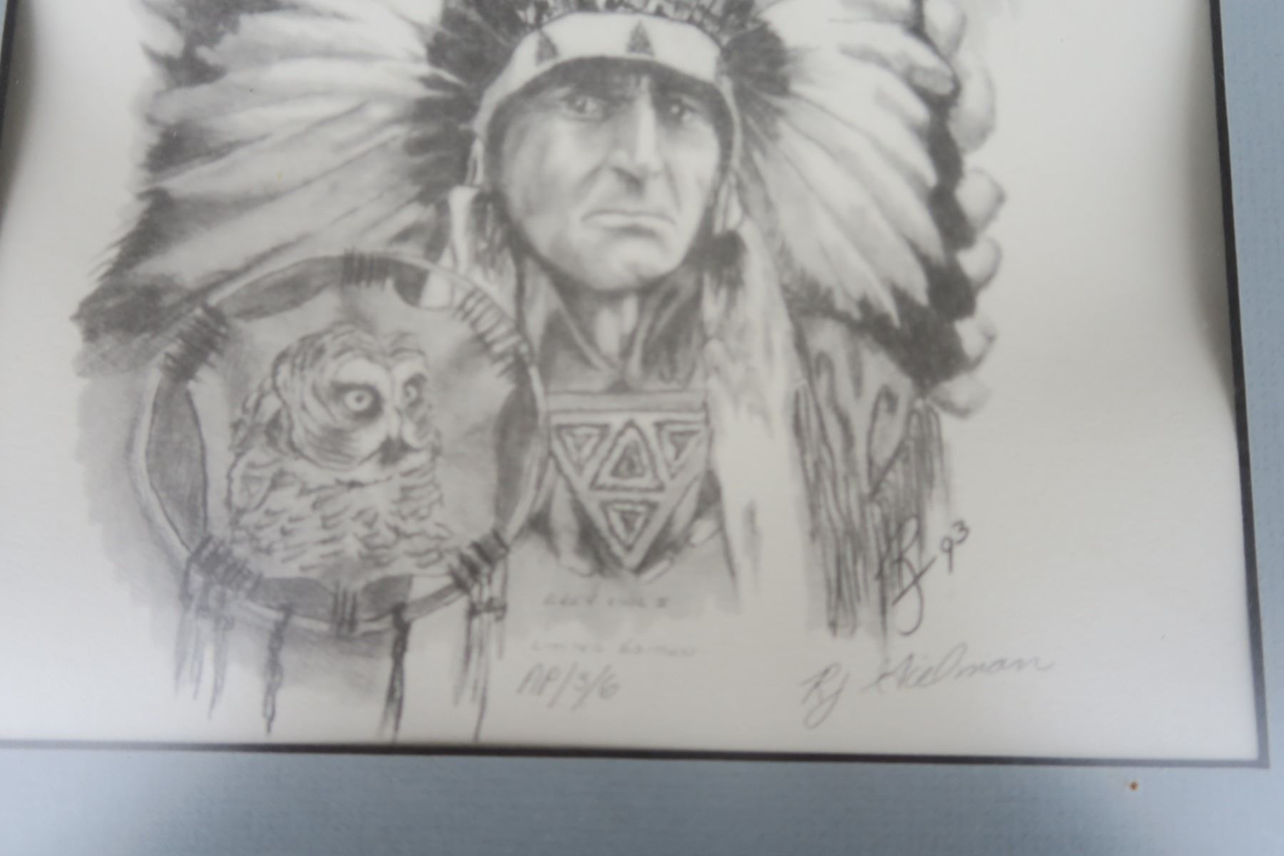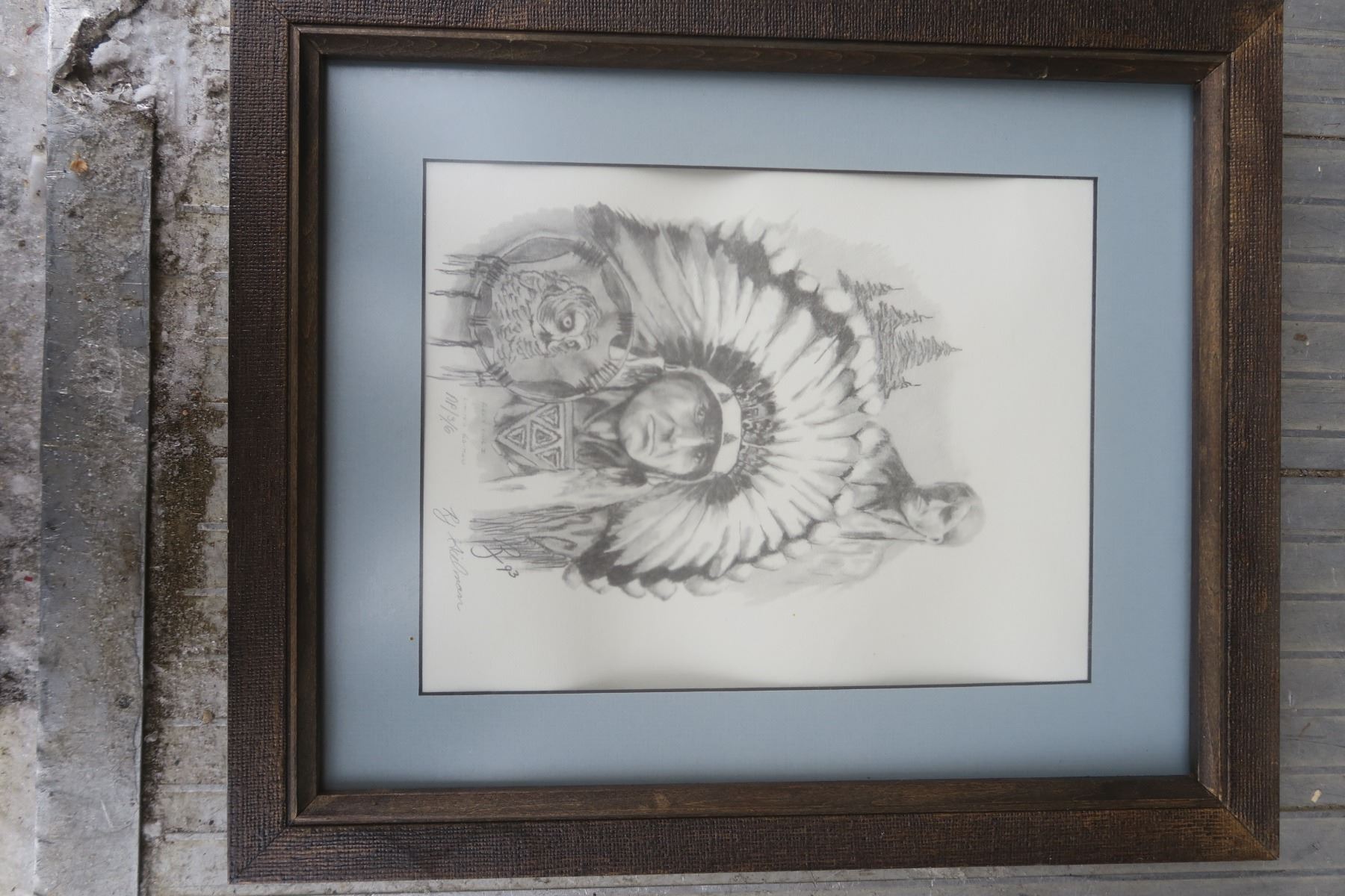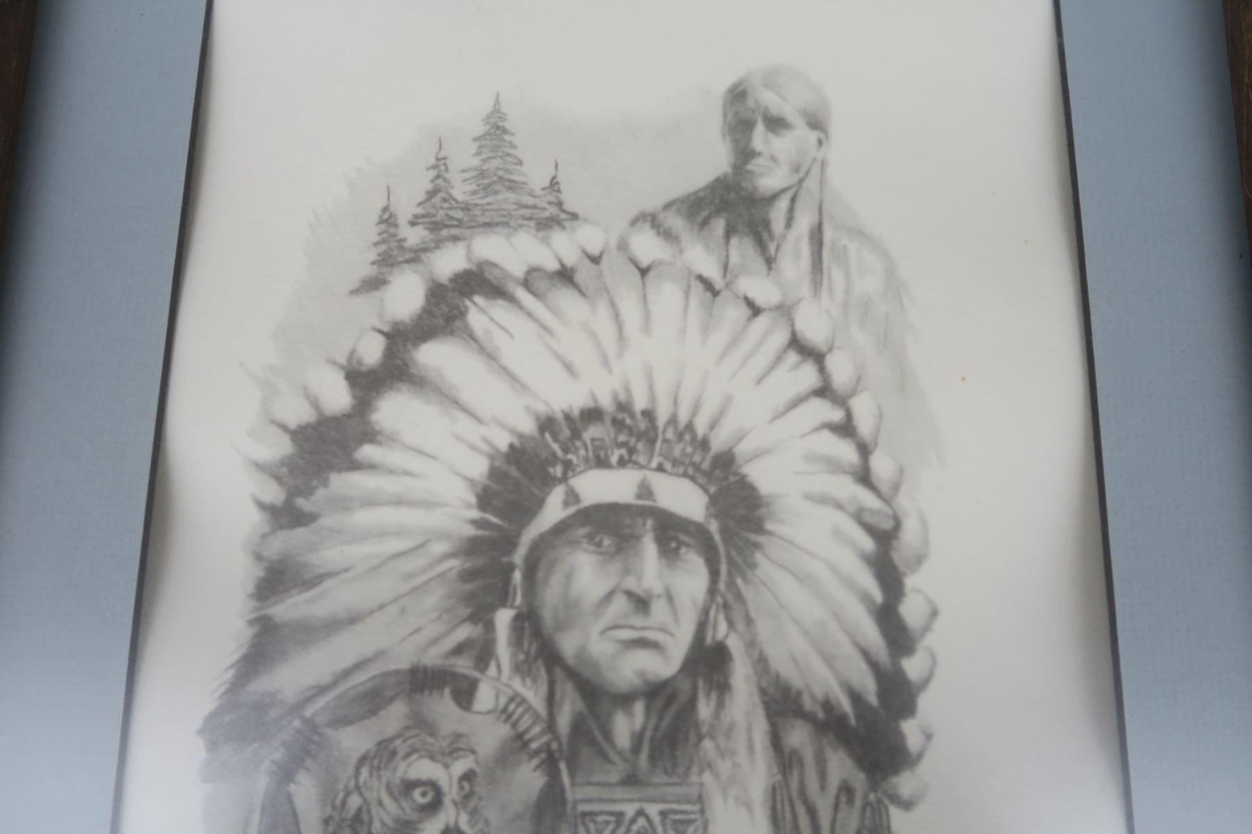 Grey Owl Picture in Frame - 13.5"x16"