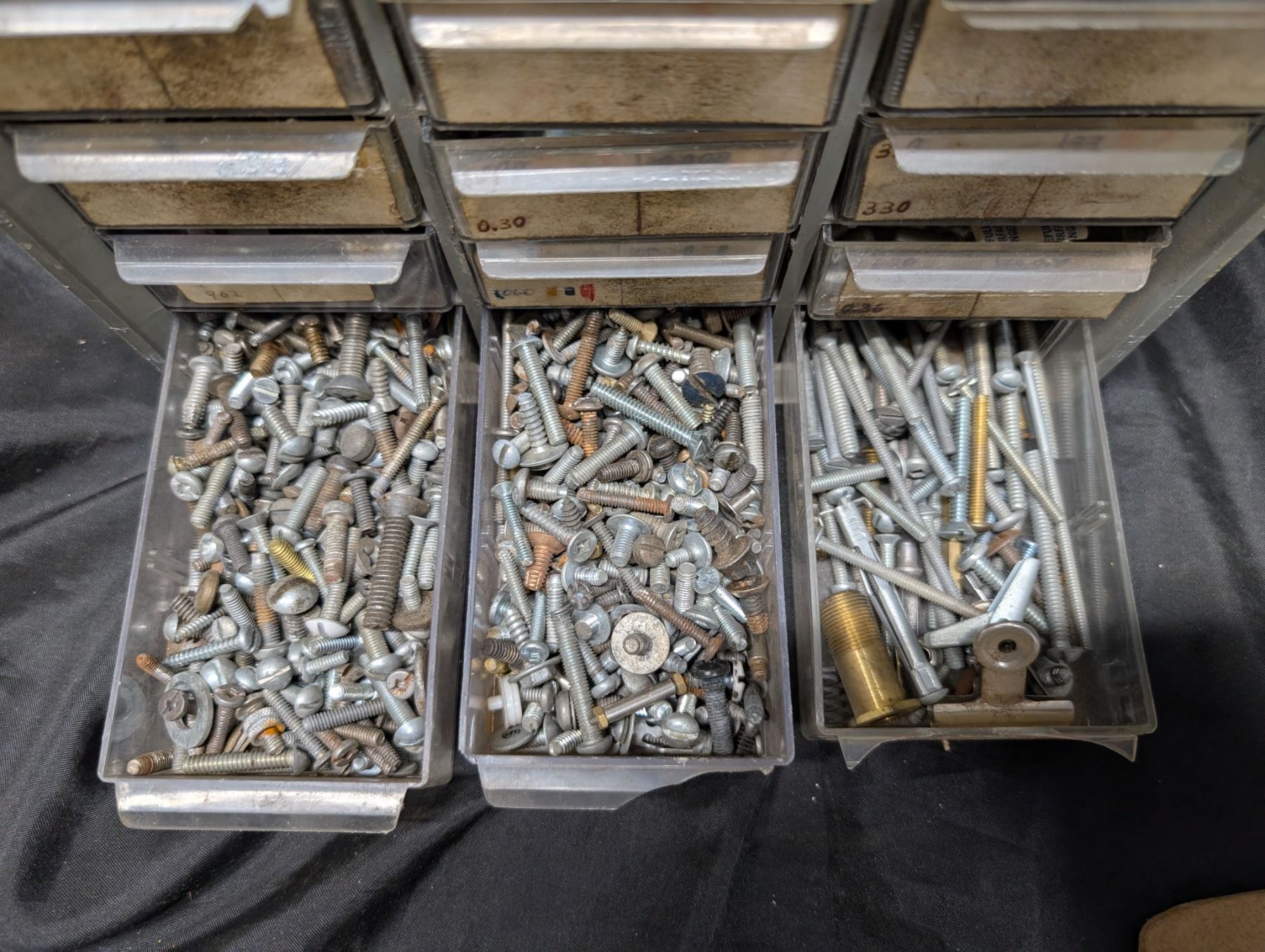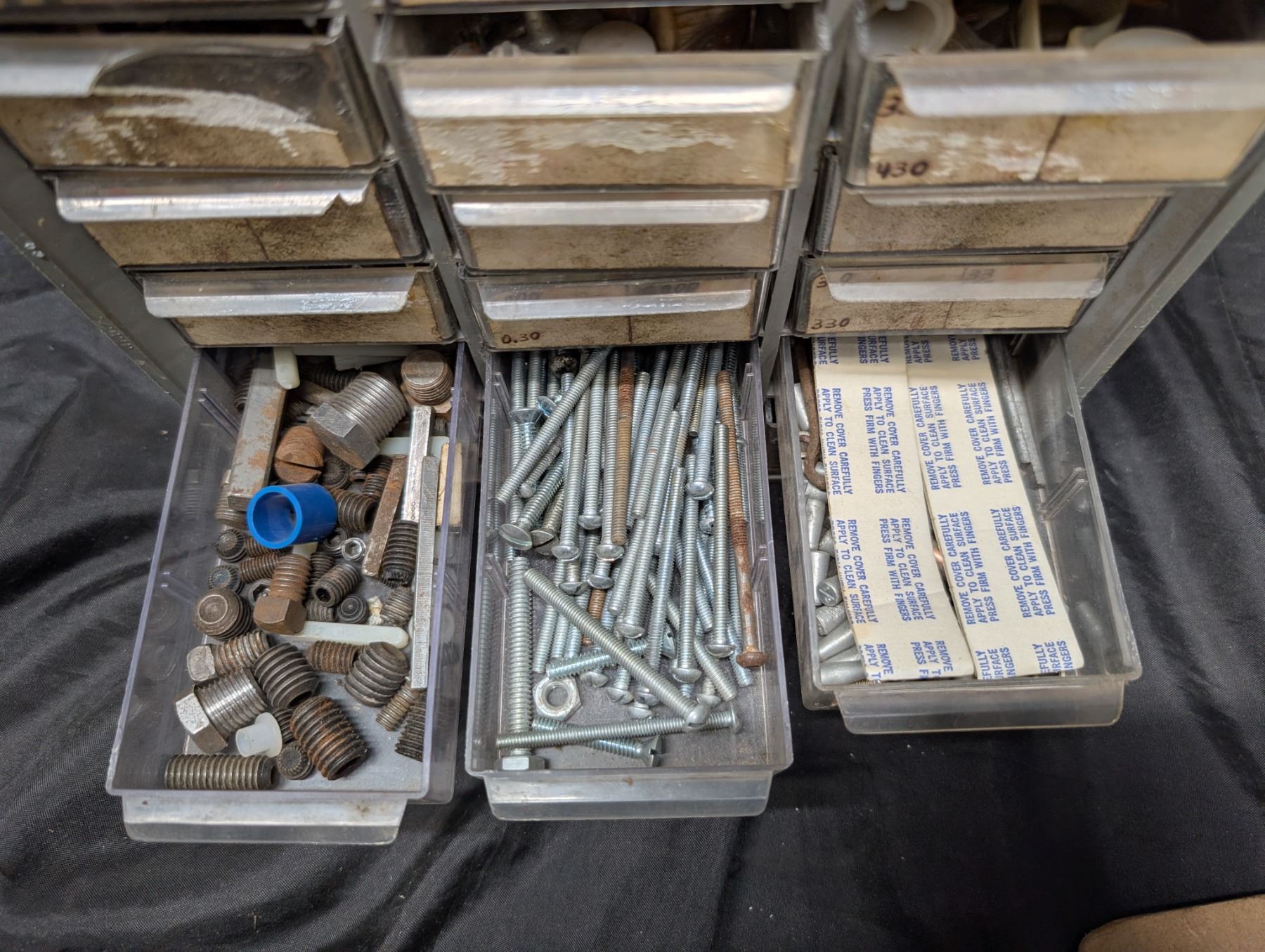 Grey Storage Unit (tools Materials) 10"x10" w/ Misc. Tool Hardware