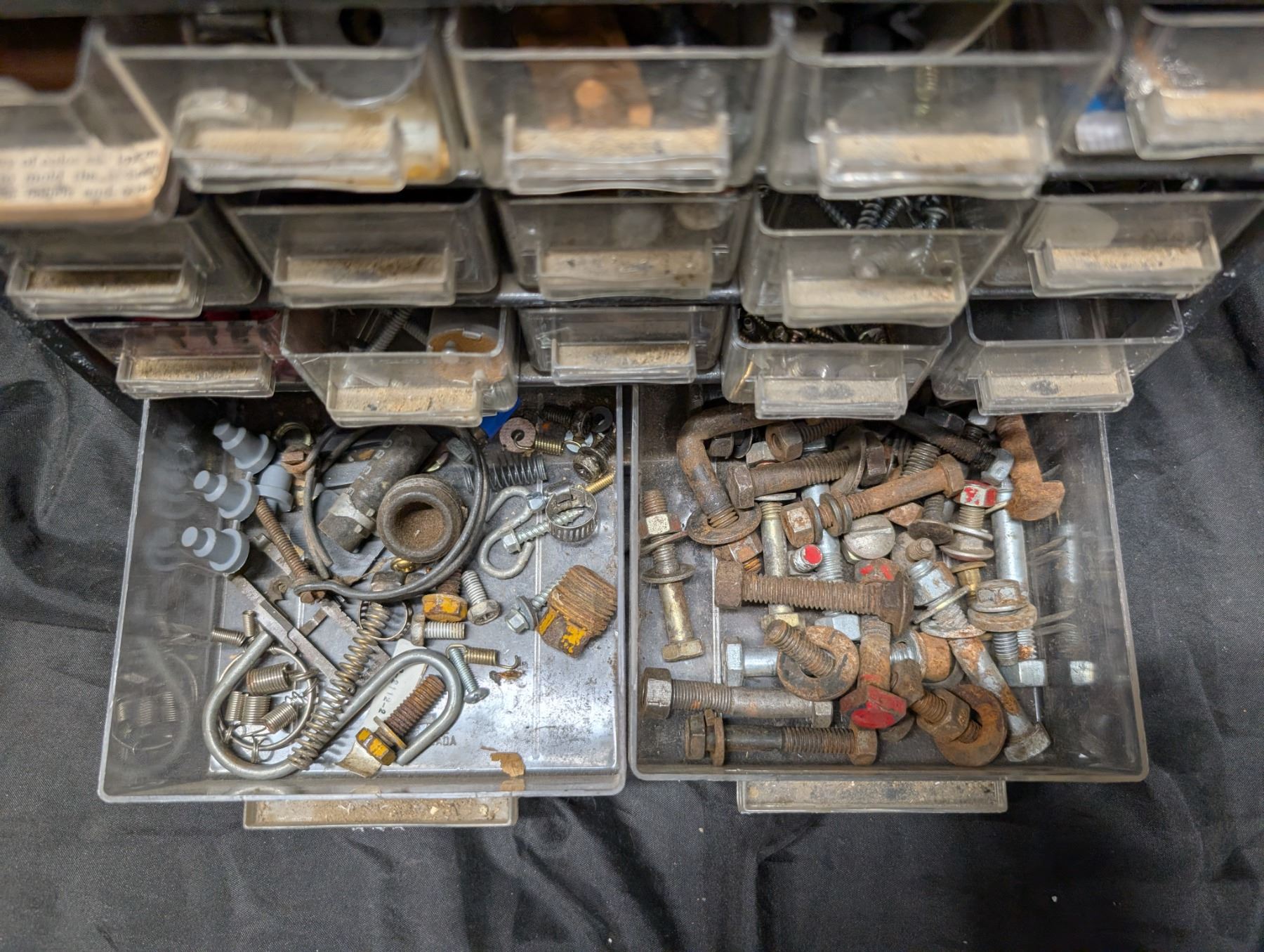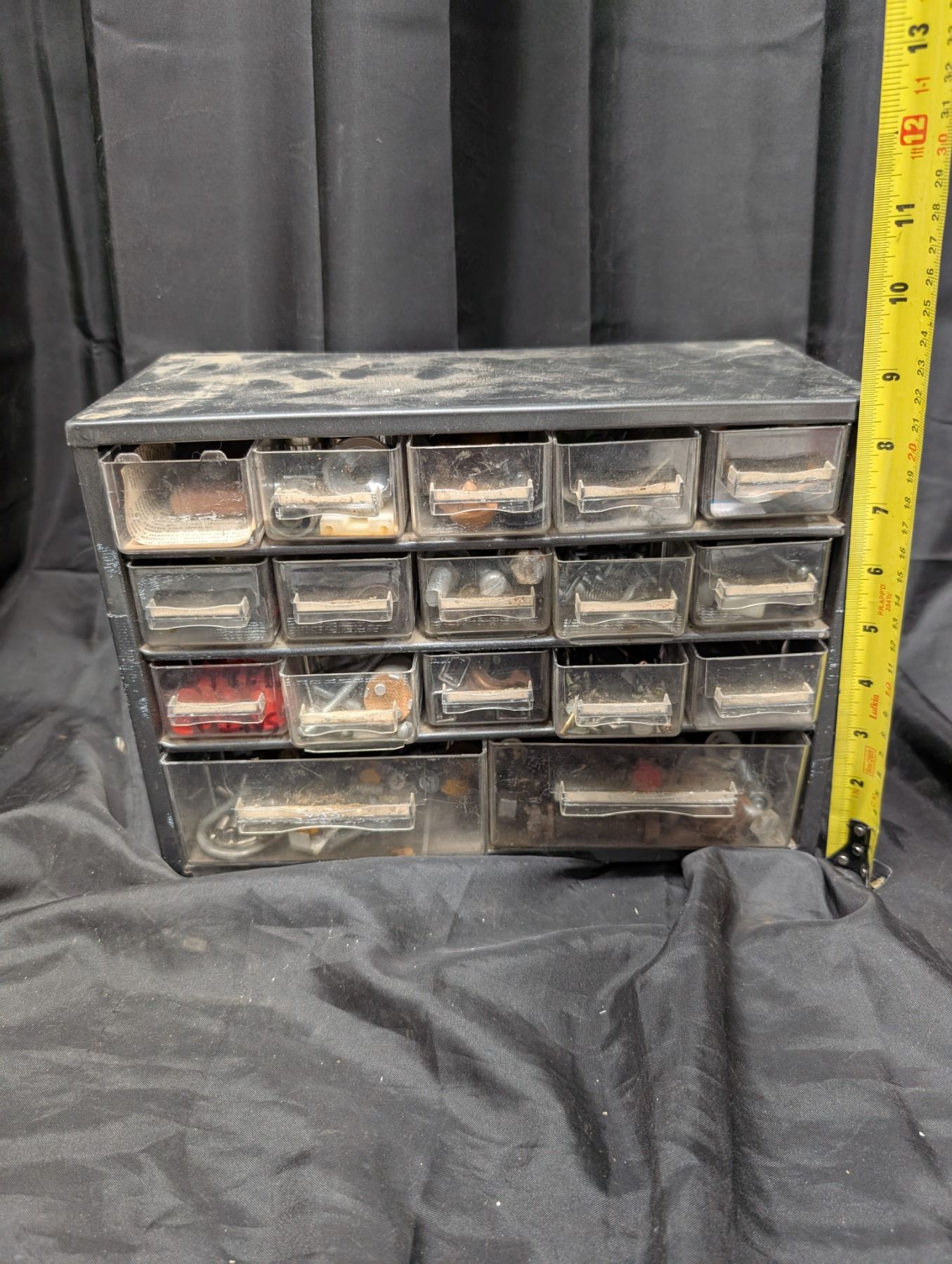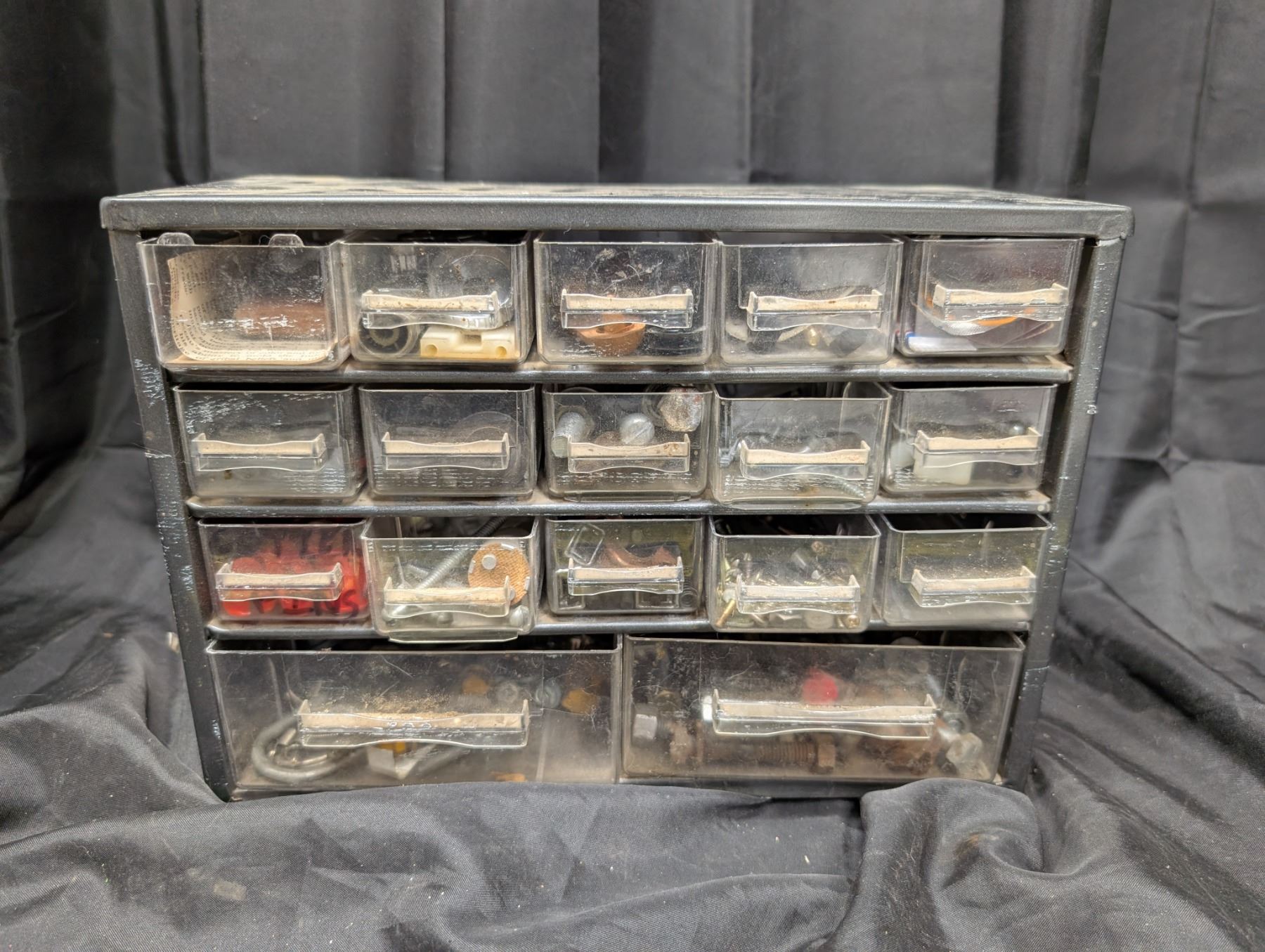 Grey Storage Unit (tools Materials) 12"x9" w/ Misc. Tool Hardware