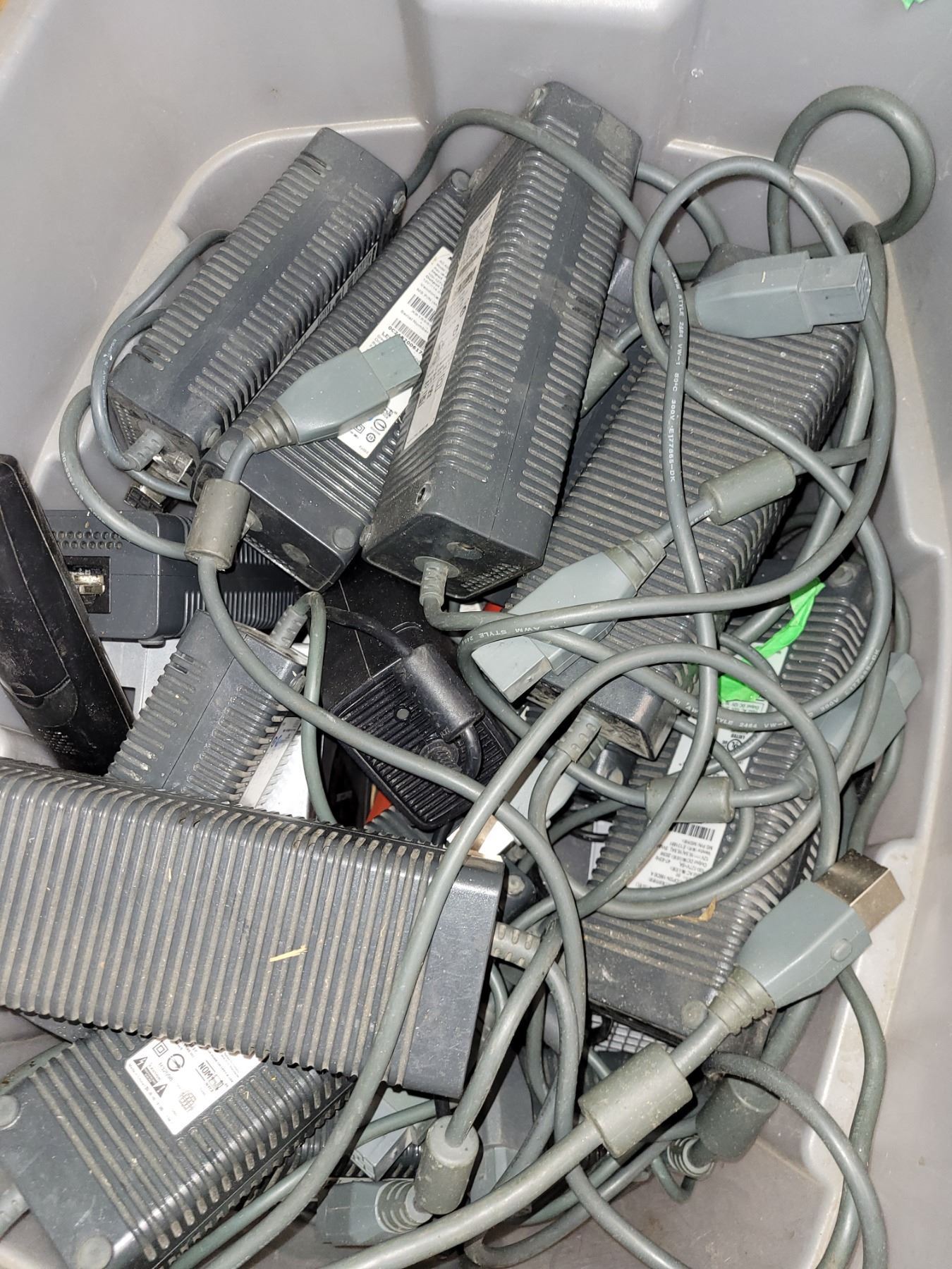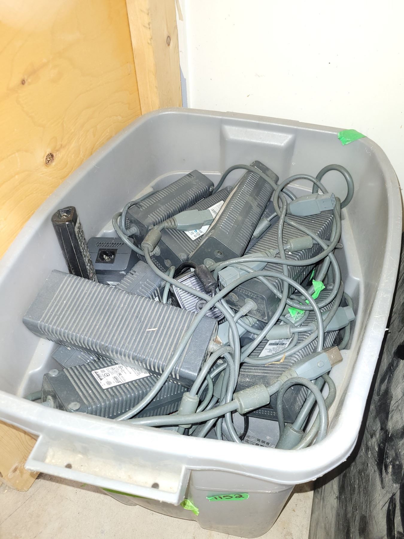 Grey Tote with Contents | Looks Like Gaming Console Power Supply etc