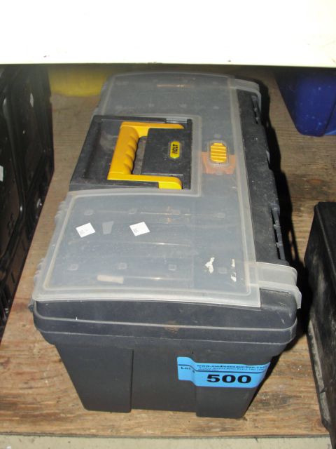 Grey plastic toolbox and contents