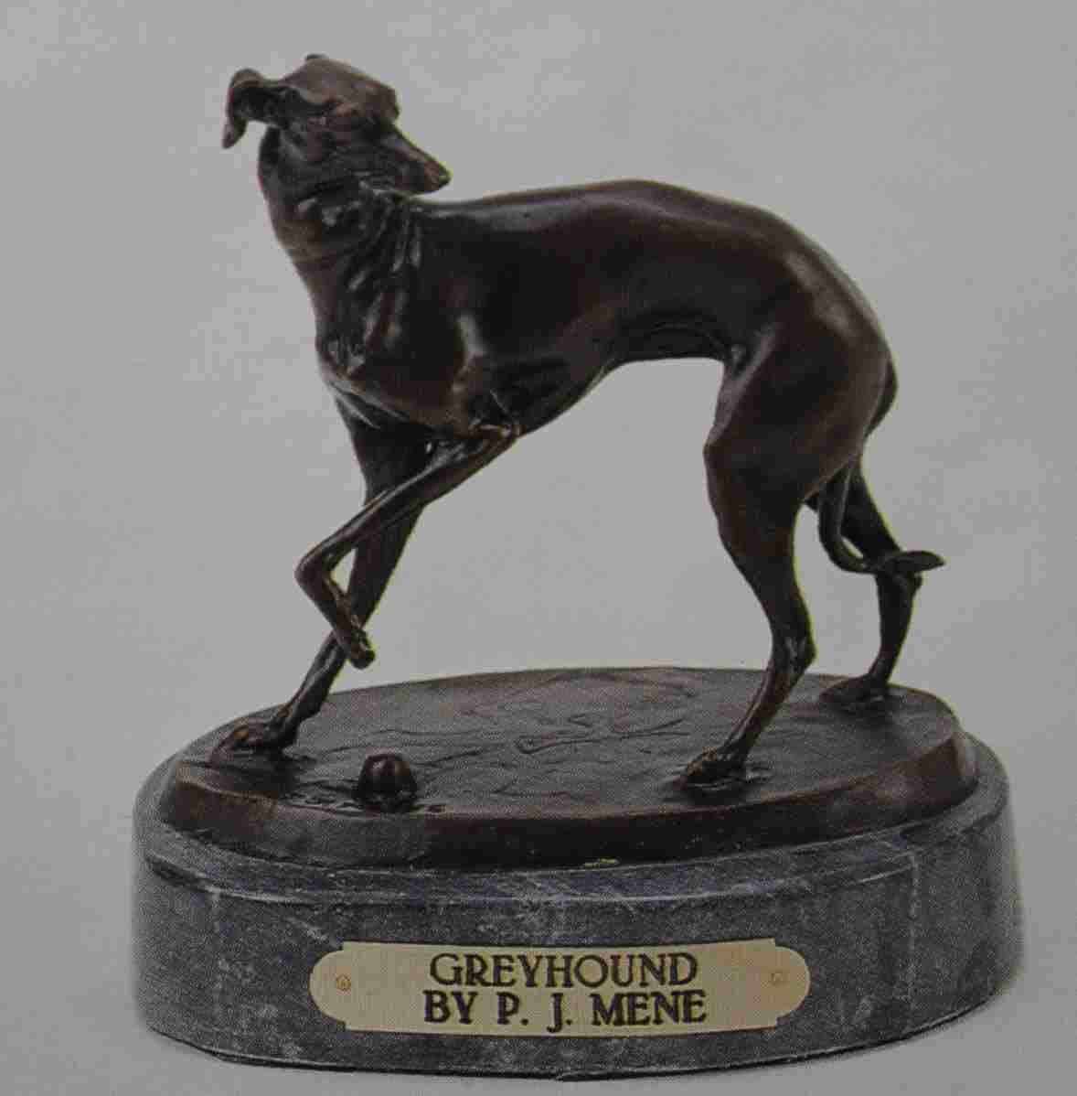 "Greyhound" Bronze Sculpture - After Mene - Museum Brown Finish - Mounted On A Fine Italian Marble Base - Beautifully Detailed - Signed - Mint Condition - 8"H X 6"W - Lost Wax Cast Bronze