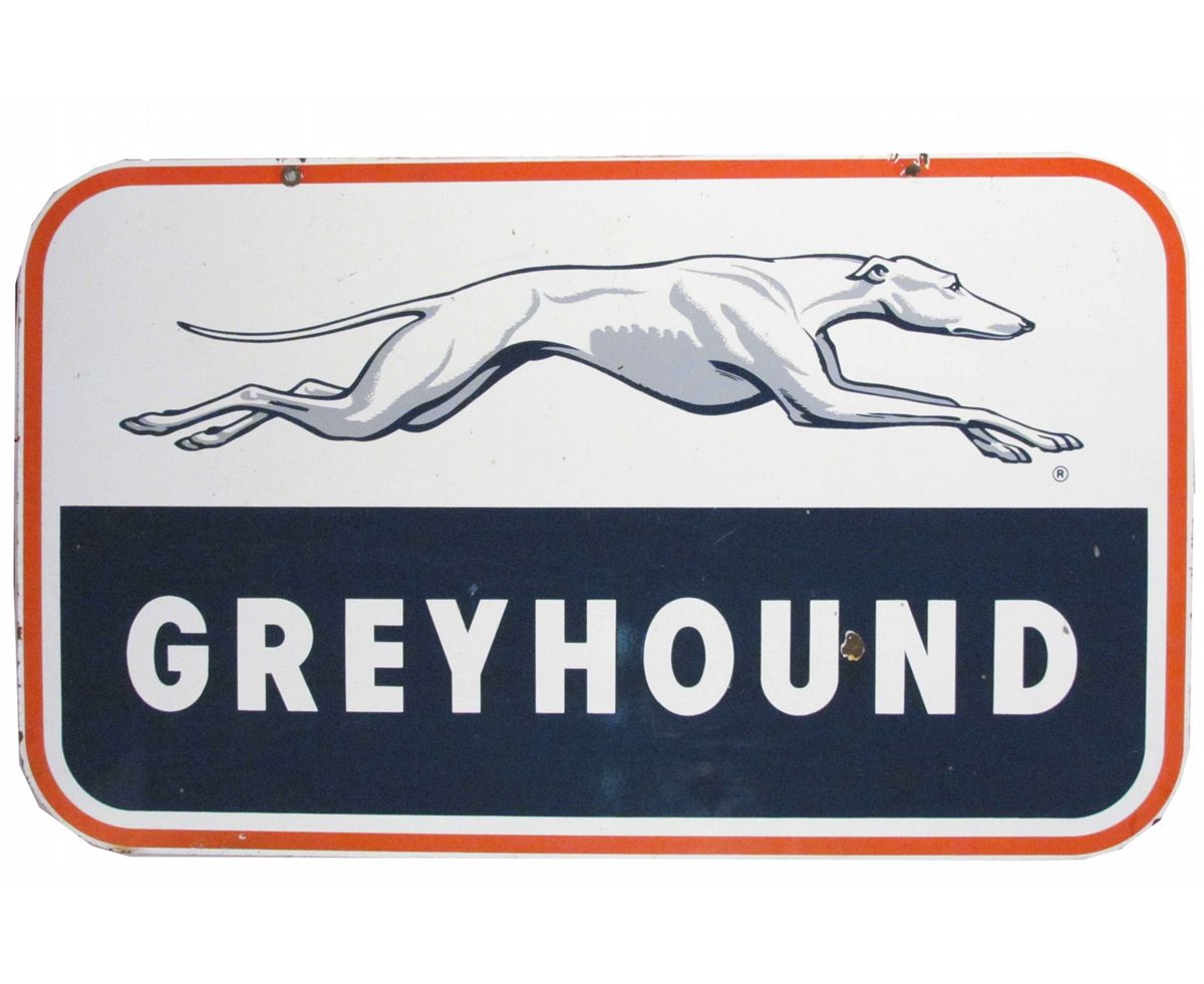 Greyhound Two Sided Porcelain Sign. 2 small chips one on each side otherwise good original condition. 40 X 24 inches.