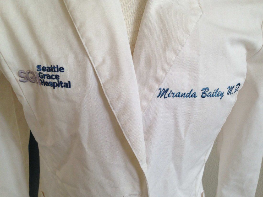 Greys Anatomy Screen worn by Actress Chandra Wilson White Coat with the Seattle Grace Hospital Logo on the right Breast Plate. The Left Breast plate has Miranda Bailey's name. Comes With COA.