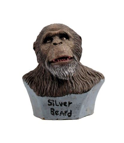Greystoke Legend of Tarzan Rick Baker Silverbeard Production Maquette - Director Hugh Hudson is perhaps best known for the classic award-winning "Chariots of Fire". Off the success of this film, he was able to fulfill a life-long dream and make the ultimate mature retelling of the "Tarzan" legend. He did just that in the equally critically and finically successful "Greystoke: The Legend of Tarzan, Lord of the Apes" (1984). Extreme care was made at all levels to elevate the tale from what had become a parody of itself, back to an emotionally charged saga of survival and what it means to be a "civilized man". Hudson made sure that the ape make-up especially was as realistic as possible, and hired special effects genius Rick Baker to create them. Of great interest was the apes that raise Tarzan from an infant to adolescence, especially that of his primate father, Silverbeard (Peter Elliott). Baker spent a great deal of time to make sure this specific character was able to transfer true love and paternal authority to the young Tarzan without looking like a puppet. He succeeds astonishingly. This is one of the actual production maquettes created to try out various make-up looks and expressions on the Silverbeard character. It was sculpted by Rick Baker's own legendary artist, Steve Wang. This magnificently detailed and life-like miniature maquette has been hand titled "Silverbeard" by Steve Wang, who also signs it on the back. The hand painted and sculpted maquette of Silverbeard is approx 3.5"x3".